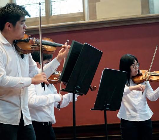 In LQ, the Music Department was unable to host its ongoing series of Evening Recitals due to the new lockdown, but CQ was greeted with the joy of an almost full and ‘normal’ return to School with a clear buzz of activity around the campus once more. Straight away, Evening Recitals in Hall began. Pianists Taki Ejima-Dalley and Charlie Harrison, alongside wind players Tony Zhang and Horace Choi, gave a truly exceptional concert to celebrate a return to live music. Charlie’s poised yet atmospheric performance of Debussy’s Cathedrale Engloutie before a more energetic and fiery rendition of Rachmaninoff’s Prelude in G-minor was the perfect opener to the evening, before Horace delighted us with Louis Spohr’s beautiful Adagio, accompanied by Mr Clive Williamson. Following this piece, Taki Ejima-Dalley took to the stage. In recent times, Taki has taken to the works of the Second Viennese School, composers who push the boundaries of tonality, an antiRomantic characterisation. Their music is complex, both to play and to comprehend. However, Taki’s performance was one of outstanding ability, showing extraordinary musicality and understanding of the notes on the page, a real treat for the capacity audience. Tony Zhang concluded the concert with some expert and acrobatic clarinet playing in Luigi Bassi’s Fantasia da concerto, a tribute to the music of Verdi’s Rigoletto. Tony has always impressed on his instrument, and this was no different; more wonderful playing – the perfect way to round off an evening of superb music making. Just before Exeat, Evening Recital II showcased the outstanding vocal talent in the School with a concert to be remembered. Eva Pomery (F), Charlene Zehnder (F), Katharina Wallach (F), Nyx Fei (C), and Sam Troy (G) took to the stage, all 2021 leavers, and gave us a wonderful recital. In the first item, the four girls sang as a quartet in Ben Ponniah’s Litany to the Holy Spirit, a short yet modern setting of this beautiful text. Following this, each of them performed one of Vaughan Williams’ Four Last Songs. In this haunting piece, somewhat untypical of the composer’s work, each of the performers gave their own spin on the performance, collectively combining to present these four songs to a captive (and capacity!) audience in the spacious acoustics of Hall. Expertly accompanied by Mr Shepherd, this was a wonderful start to the concert. Next, the 1YS string quartet of Sophie Ju (C), David Yang (H), Michael Huang (G), and Mr Bolivar performed Arvo Part’s achingly serene Summa, totally entrancing the audience. The final item was Bach’s Cantata no.82, Ich habe genug, performed by Sam Troy, accompanied by string ensemble and solo flute. Jonathan To (L), in his first year at Charterhouse, joined the quartet this time, offering poise and maturity on the cello line. Sam’s performance of this substantial and challenging repertoire was outstanding; he showed understanding, musicality, and real enjoyment in his performance, the result of all the time and effort he had put into learning this work. It’s no easy feat to perform such repertoire, particularly at Sam’s tender age, but this was a performance and concert to be remembered. Evening Recital III similarly did not disappoint and even boasted two Vivaldi Concerti, played by Chamber Orchestra under the expert direction of Head of Strings, Mr Bolivar. It must be noted that the pupils put this repertoire together in the short space of three weeks, more or less, amidst assessments and the like, delivering what was a truly splendid showcase of virtuoso string playing.