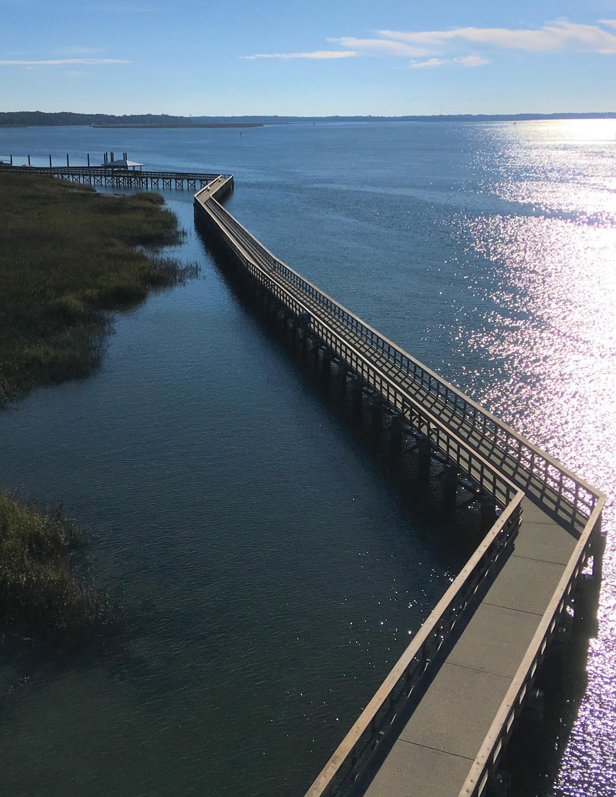 Once the historic Magnolia Line Railroad, the Spanish Moss Trail is now a 14-mile recreational path connecting Beaufort and Port Royal, with nearly 10 miles open for scenic walks, biking, and fishing.