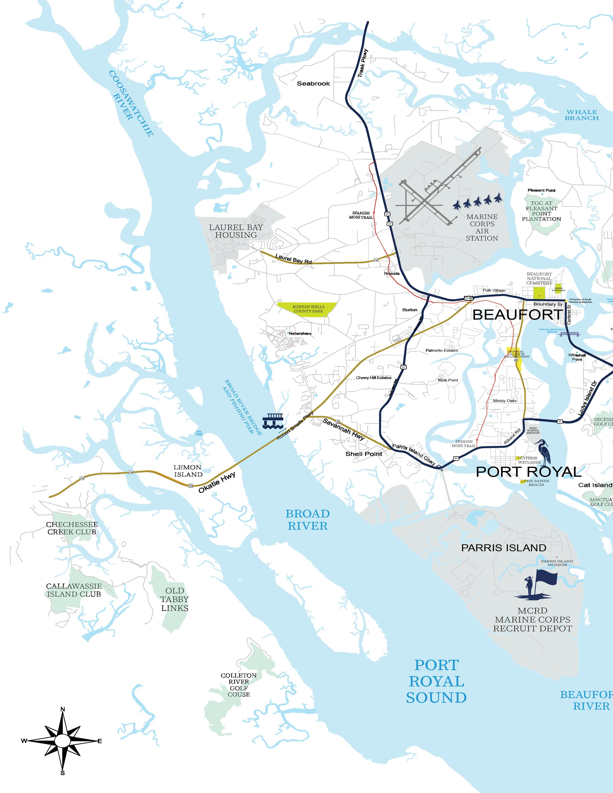 The city lies on Port Royal Island, part of the Lowcountry Sea Islands region, and about 17.8% of its total area is water.