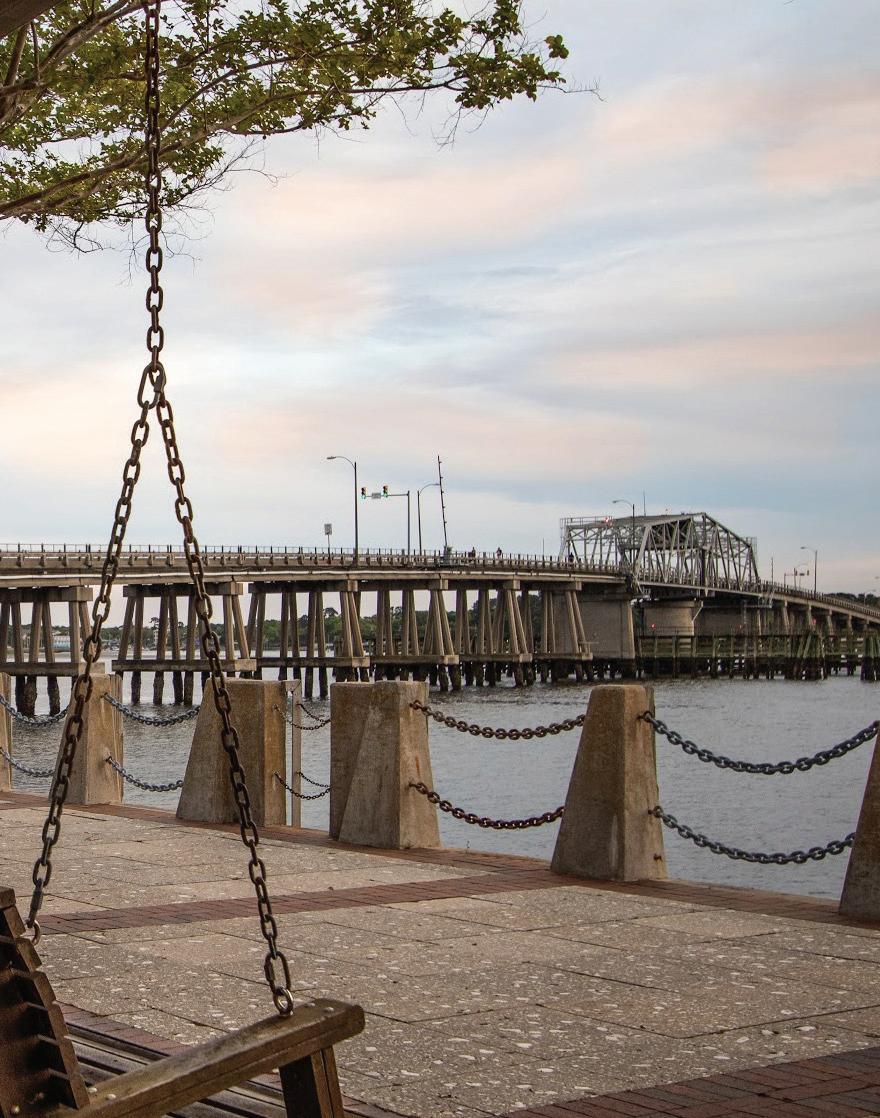 A picturesque park along the waterfront, ideal for strolling, picnicking, and enjoying views of the Beaufort River & Beaufort Memorial Bridge.