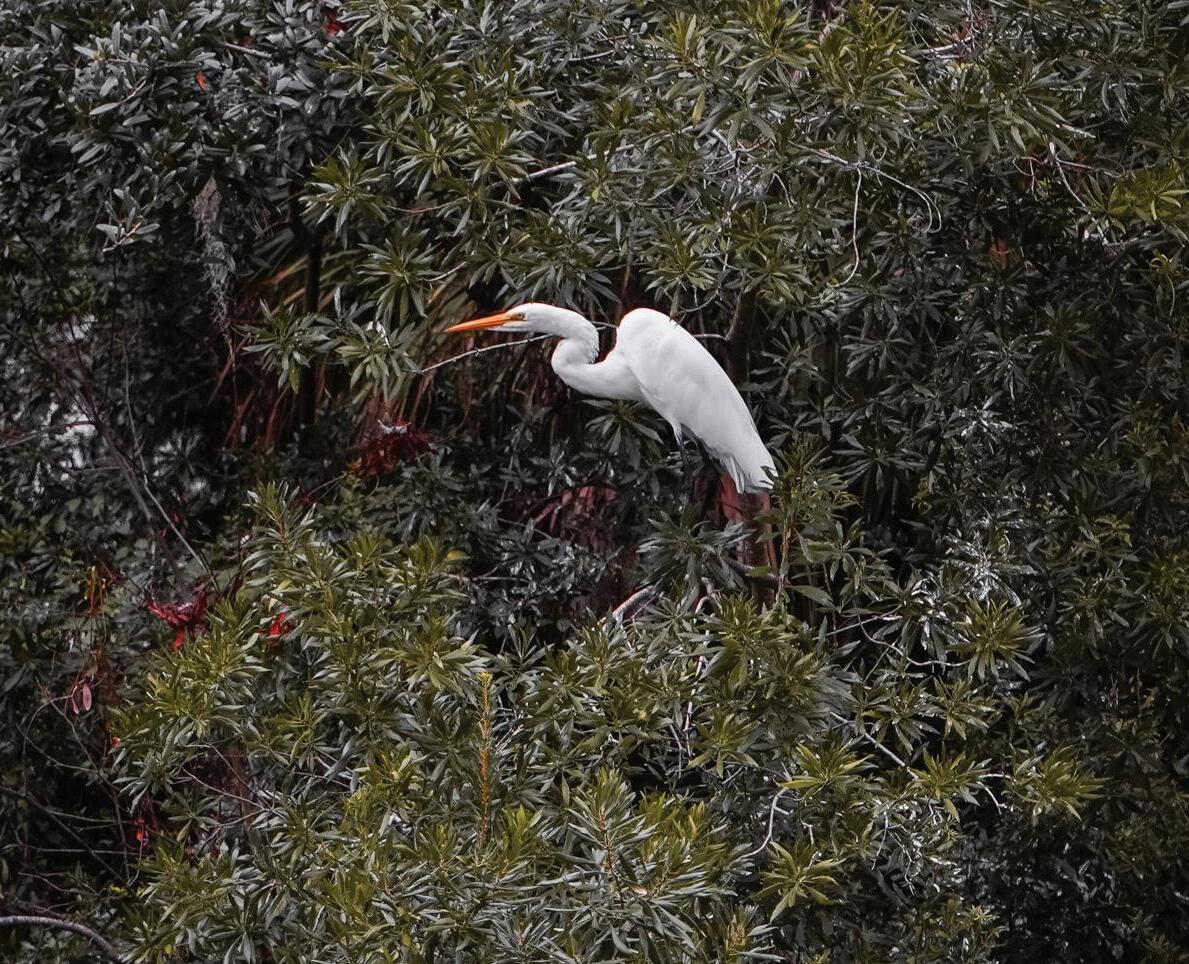 Bald eagles and ospreys soar above, while herons, egrets, ibis, spoonbills, and over 200 bird species nest in local marshes and parks.