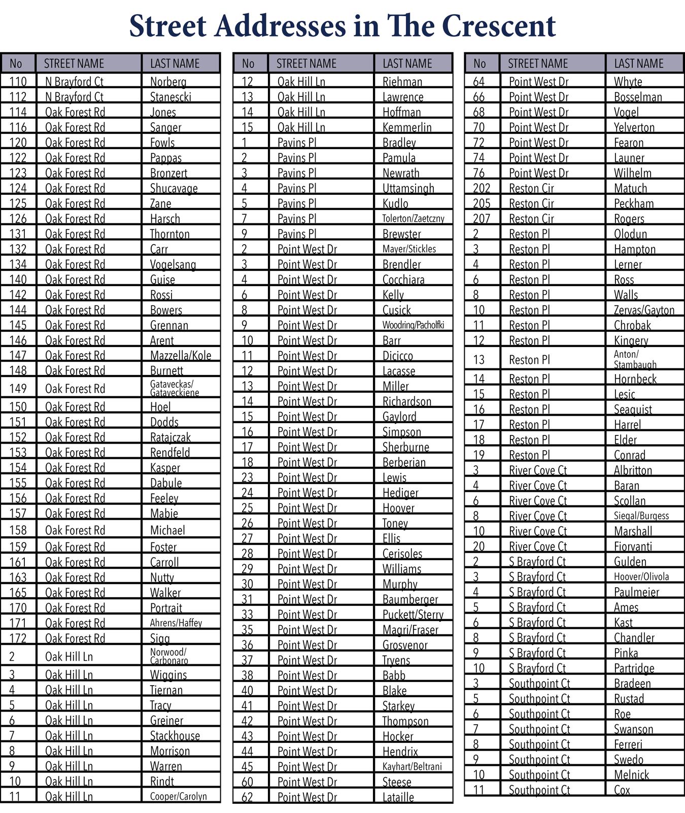 Bradeen, Charlene 3 S Point Ct 843-706-2811 chargb6@yahoo.com