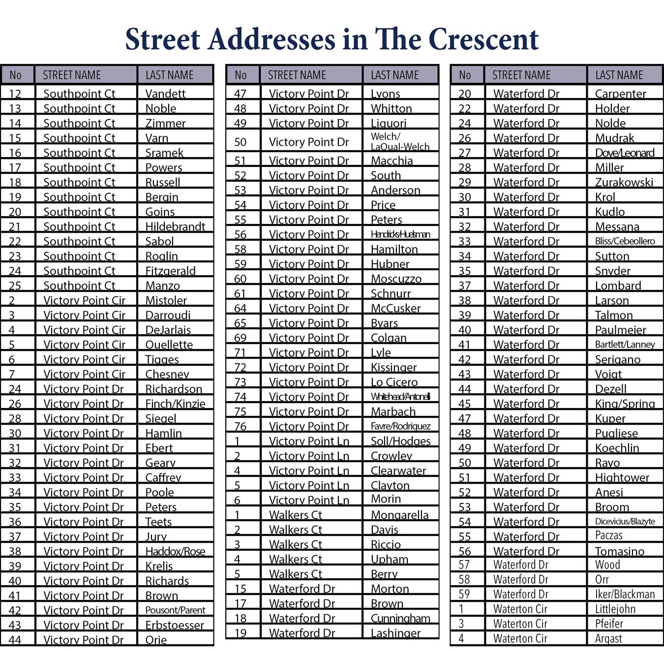 Boles, Eslie & Maria 11 Carrington Point Rd Eslie: 937-478-0723 Maria: 937-477-2583 mboleshh@gmail.com