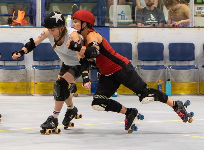 And what a crowd it was! The amount of people I had asking for my picture, giving me high-fives, and asking me when we would be back to play again was overwhelming in the best way. The sport was wellreceived by Chase, and the players noticed. Michelle Wright, AKA #7175 Shelvira, had nothing but a positive outlook despite suffering a broken ankle during the game.