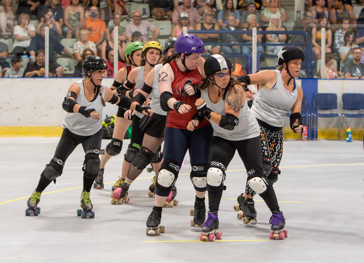 The bleachers were packed. The beer garden was overflowing. The music was pumping. The MC’s, angelic Kerry Cardwell (derby name Bangers), along with rock-n-roll Gregg Wright (derby name GDub), had the crowd cheering and clapping well before the first whistle.