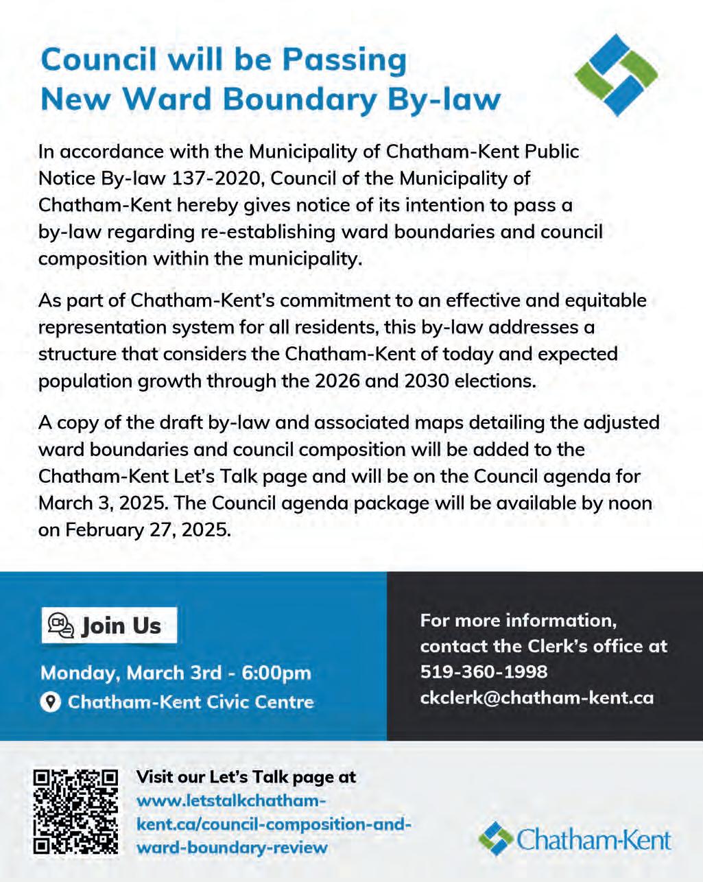 The third-party review of C-K’s ward system and council composition kicked off in May 2024 following a motion from North Kent Coun. Rhonda Jubenville. But it’s an idea that’s been floated unsuccessfully by previous councillors in the past. Other amendments were brought to the floor.