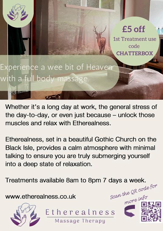 awards have recently come its way. Congratulations to IV10 in Fortrose, named Best eatery in the highlands and Islands Food & Drink awards 2024, and to John M Munro of Dingwall – whose shop in Fortrose is one of Chatterbox’s valued sales outlets – named training Partner of the Year 2024 in the scottish Craft Butchers training awards.