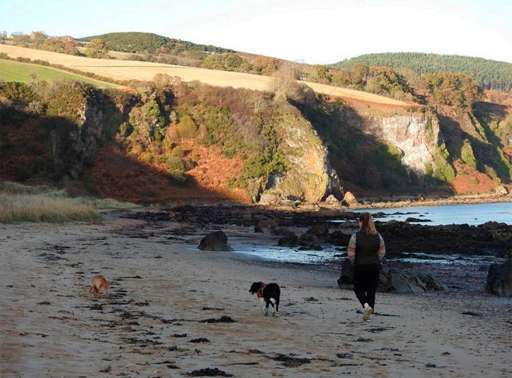 Isla with her dogs on Rosemarkie Beach.