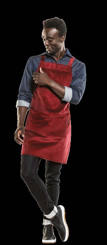 La colección Velvet es robusto y tiene un aspecto auténtico. Disponible en tres modelos diferentes y completamente a la moda en los colores azul, rojo, amarillo, verde y negro. El tejido pana le da a los delantales un carácter guay con ese toque de lujo.