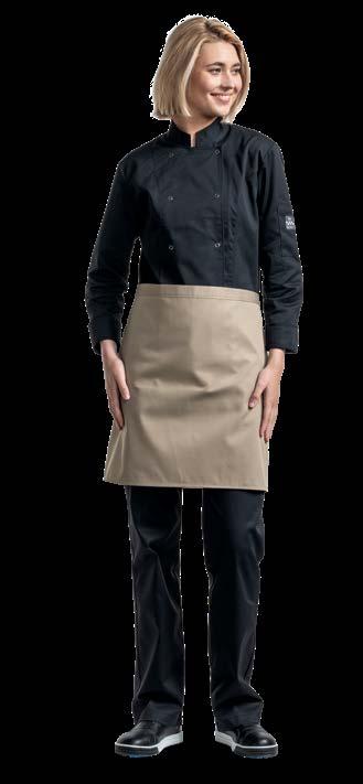 The Basix collection can be recognized by its diverse colors and simple models. If you’re looking for a plain apron or chef jacket, this is the place to be!