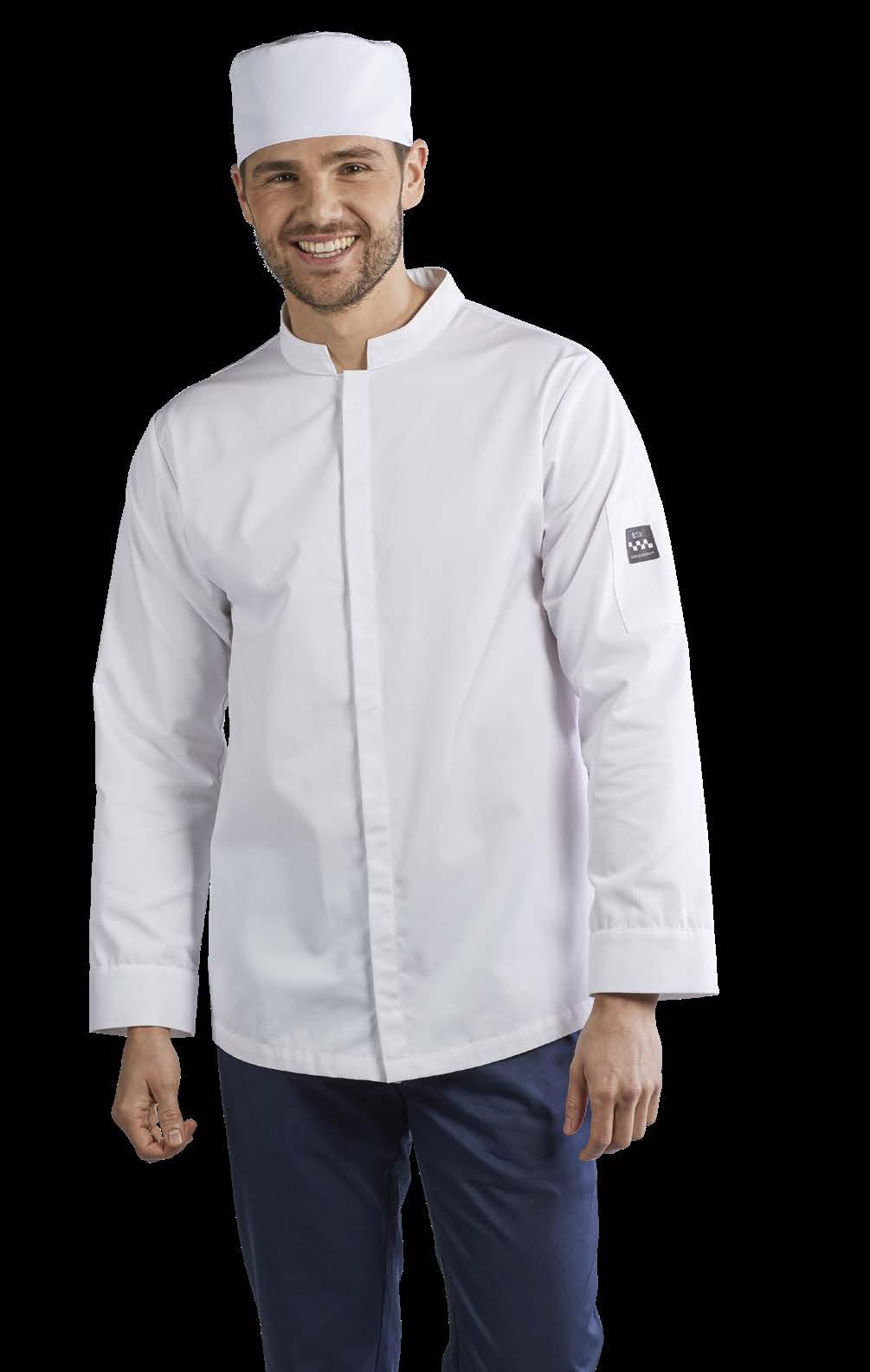 Go for a pure, fresh look with our Nordic collection! The Nordic chef jacket was designed for master chef Joris Bijdendijk from the RIJKS®* restaurant in Amsterdam. The idea was to develop a new chef jacket in a shirt style. The items in this collection therefore feature freedom of movement and comfort. CHAUD DEVANT found inspiration in the Scandinavian trends: the Nordic items are sleek and simplistic, but with sophisticated details. If you’re looking for user-friendly chefwear, this collection is for you!