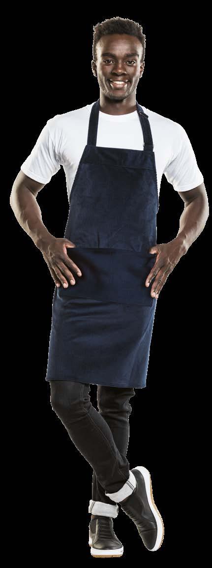 La colección Velvet es robusto y tiene un aspecto auténtico. Disponible en tres modelos diferentes y completamente a la moda en los colores azul, rojo, amarillo, verde y negro. El tejido pana le da a los delantales un carácter guay con ese toque de lujo.