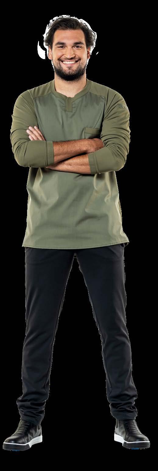 Freedom of movement is the most prominent feature of the FX collection. The entire collection is made of lightweight fabrics, both with and without texture. The fine jersey fabric guarantees unlimited flexibility. This fabric is made of Tencel® and polyester produced from recycled plastic bottles. The combination of these materials is not only environmentally friendly, but also ensures that the fabric dries quickly. Whether you prefer short, half-length or roll-up sleeves, the collection has it all. Make every day in the kitchen a comfortable day!