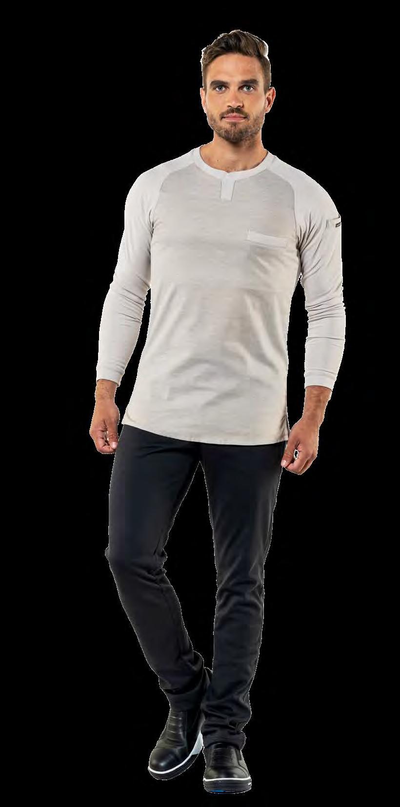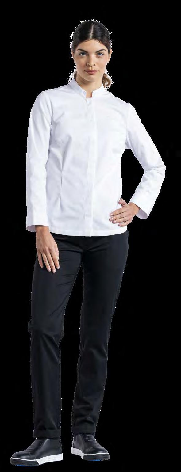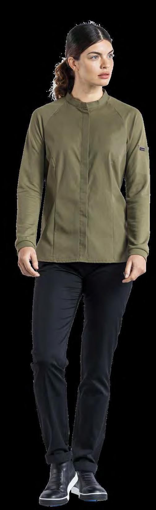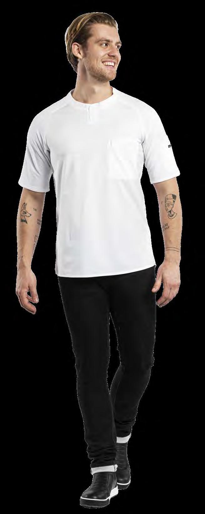 La libertad es la máxima prioridad en la colección FX. Hemos optado por tejidos ligeros, con o sin estructura. El delicado tejido jersey ofrece la máxima flexibilidad. Este tejido está compuesto por Tencel® y poliéster reciclado de botellas de plástico. Esta combinación de materiales no sólo es respetuosa con el medio ambiente, sino que además permite que el tejido se seque con rapidez. Manga corta, tres cuartos o remangable: elije el modelo que más te conviene. De este modo, te mantendrás con facilidad en la cocina.