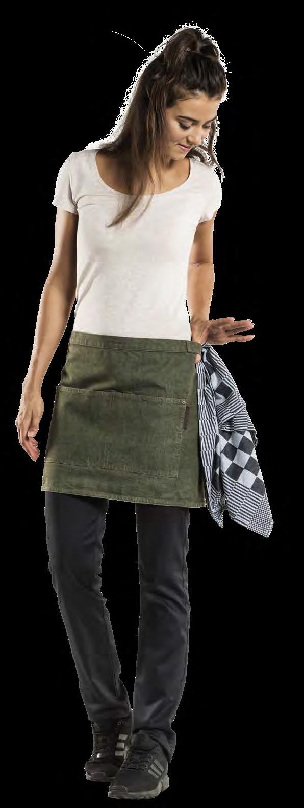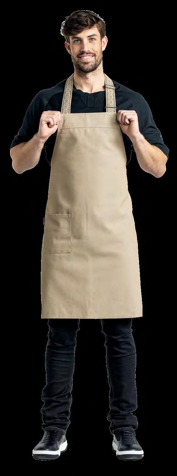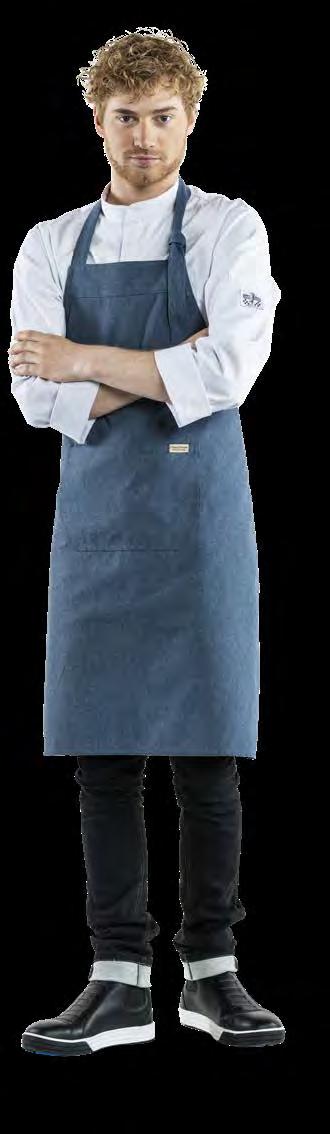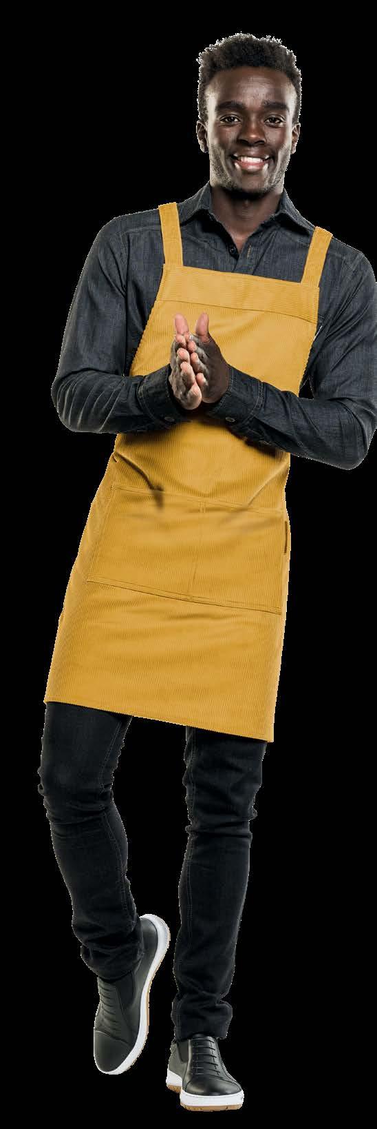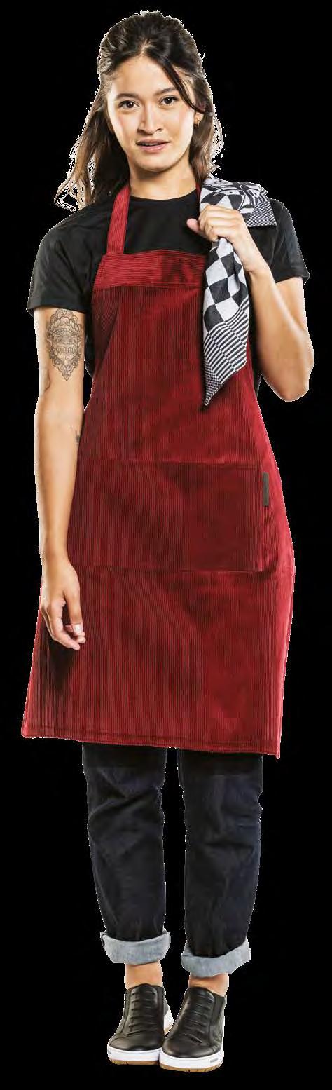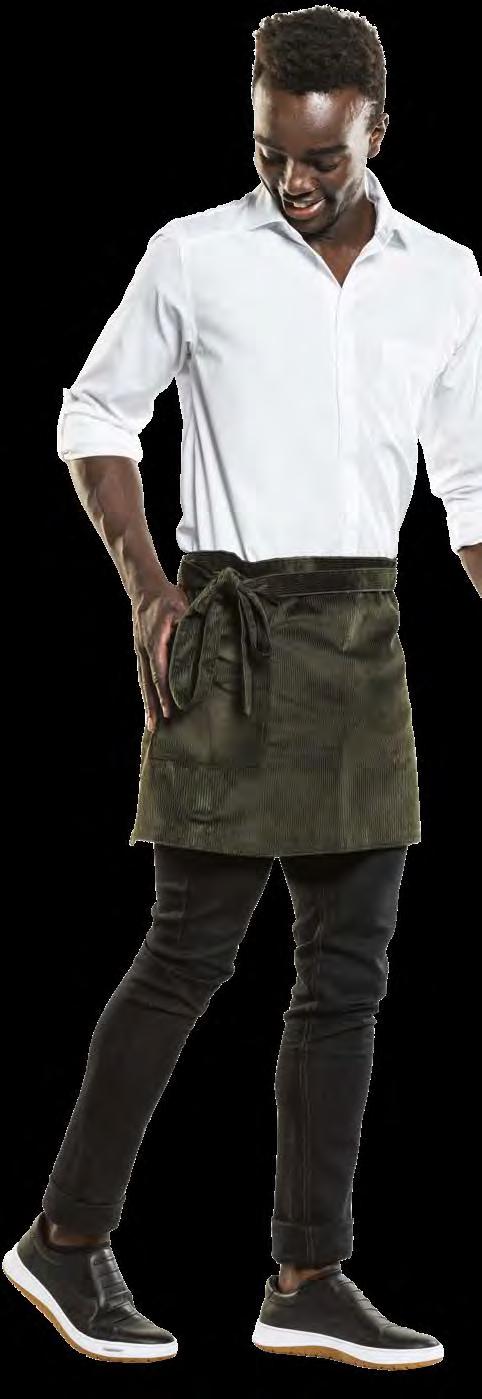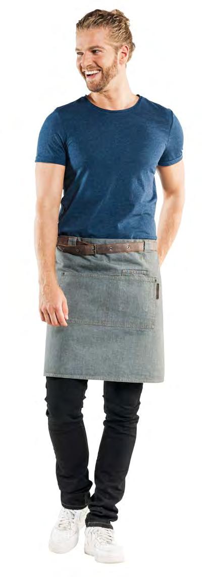 Auténtica, ligera y atemporal. Desde bistro, camiones de comida hasta bar moderno, la colección Cuero se siente principalmente hogareña. La innovadora combinación de cuero de bovino y poliéster hace que los delantales de cuero con peto y sin peto sean ligeros y menos propensos a las manchas. Todas las cintas son ajustables y se adaptan a la talla deseada. El acabado con ‘borde sólido - pespunte único’ le da esa imagen desenfadada conocida.