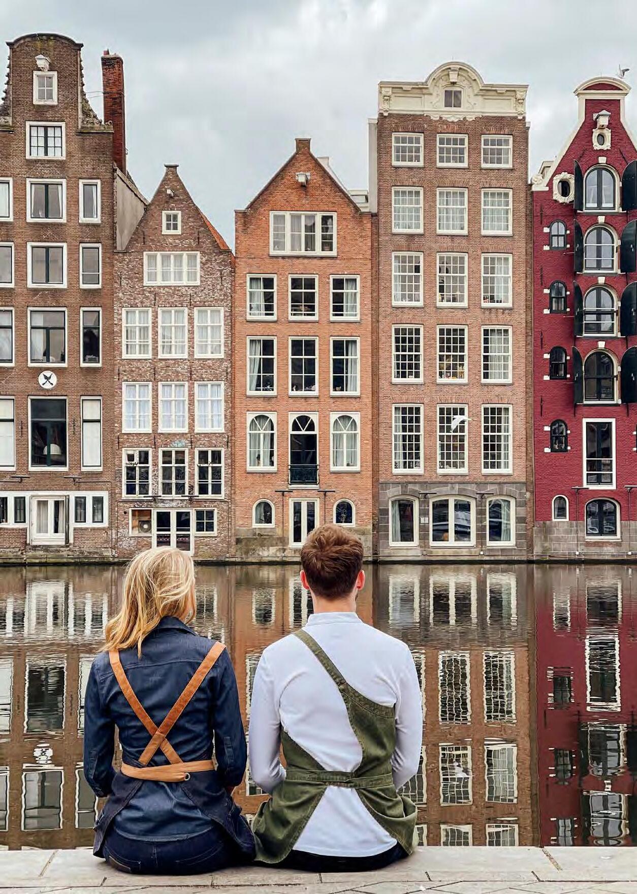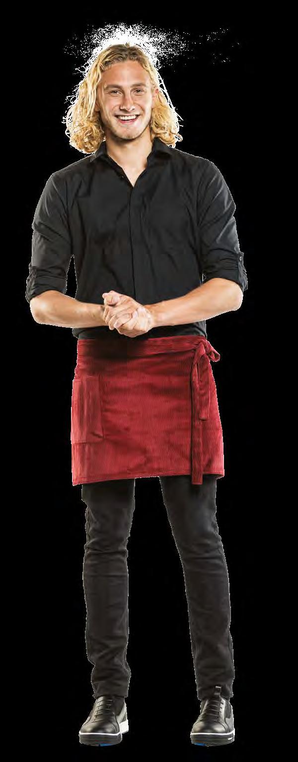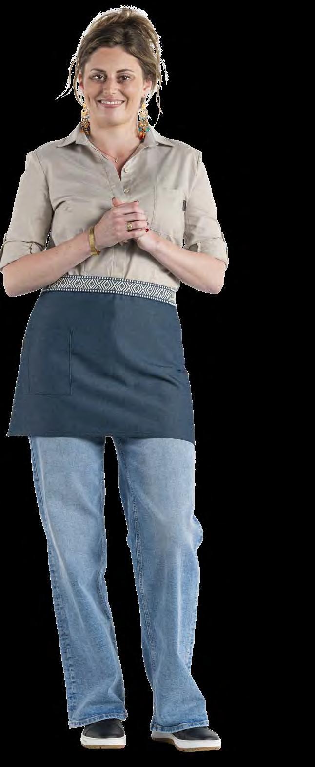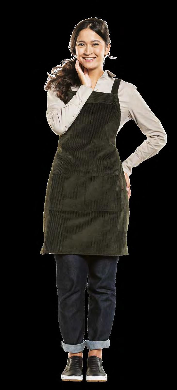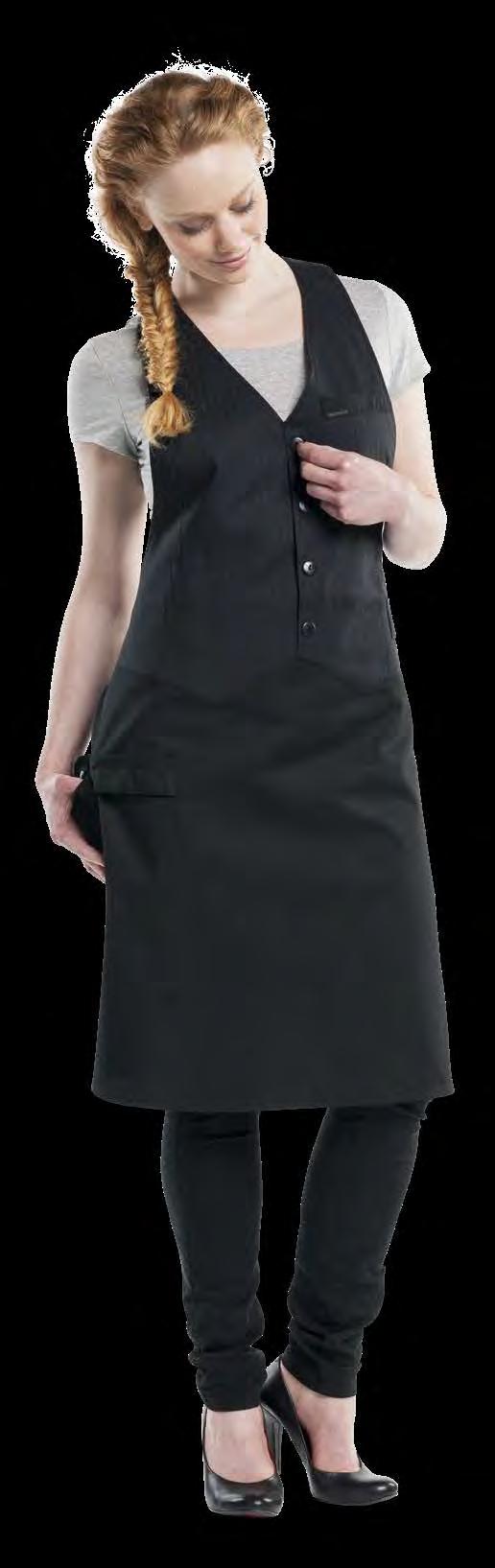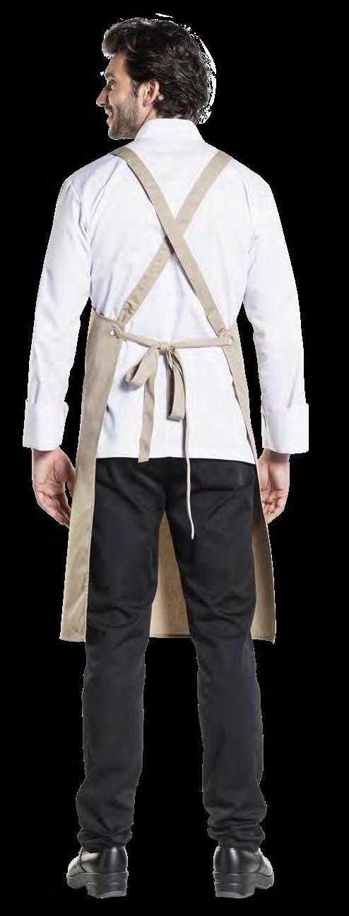 Auténtica, ligera y atemporal. Desde bistro, camiones de comida hasta bar moderno, la colección Cuero se siente principalmente hogareña. La innovadora combinación de cuero de bovino y poliéster hace que los delantales de cuero con peto y sin peto sean ligeros y menos propensos a las manchas. Todas las cintas son ajustables y se adaptan a la talla deseada. El acabado con ‘borde sólido - pespunte único’ le da esa imagen desenfadada conocida.