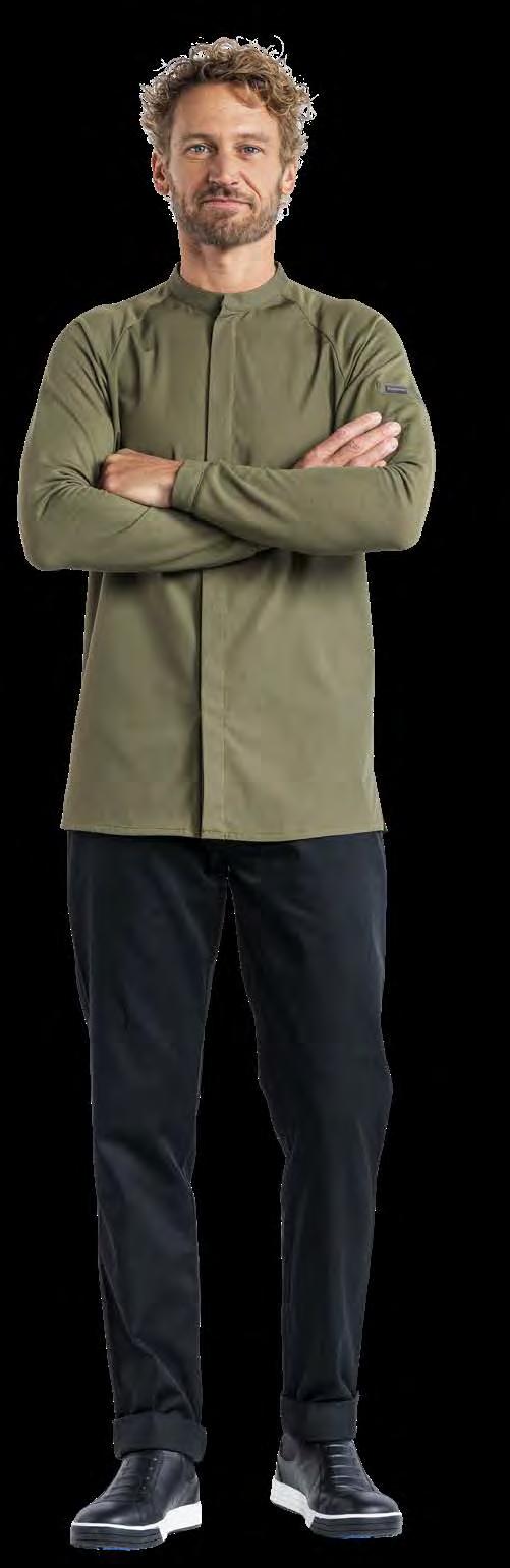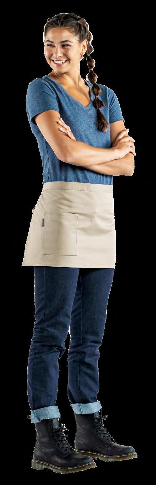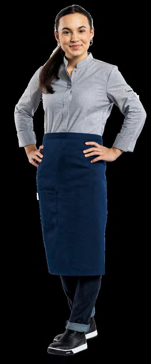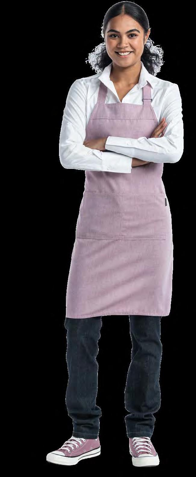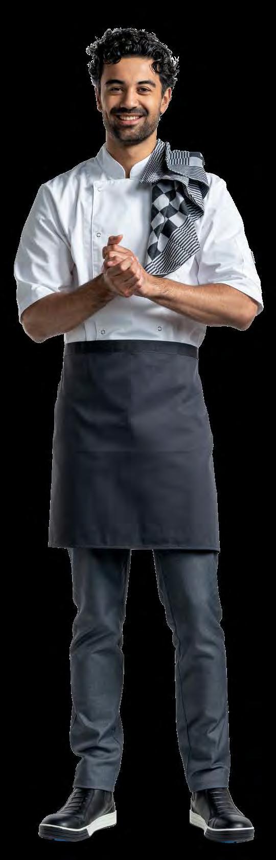 Colores profundos, diseños sencillos y accesibilidad para todos definen la colección Basix. La colección incluye chaquetas de chef, pantalones y delantales para personal de cocina y de servicio, combinando funcionalidad con una estética limpia y atemporal.