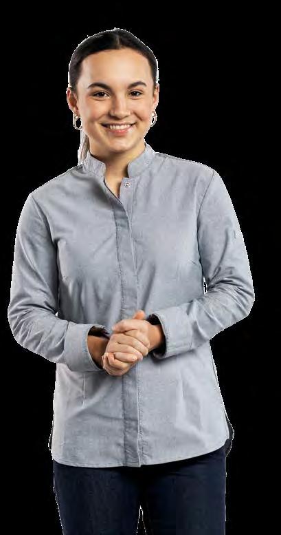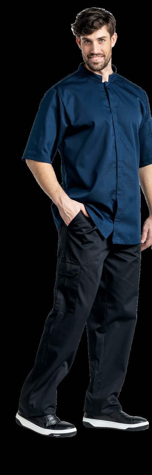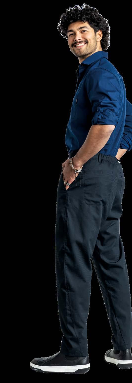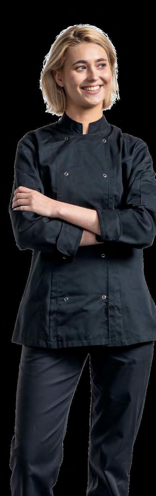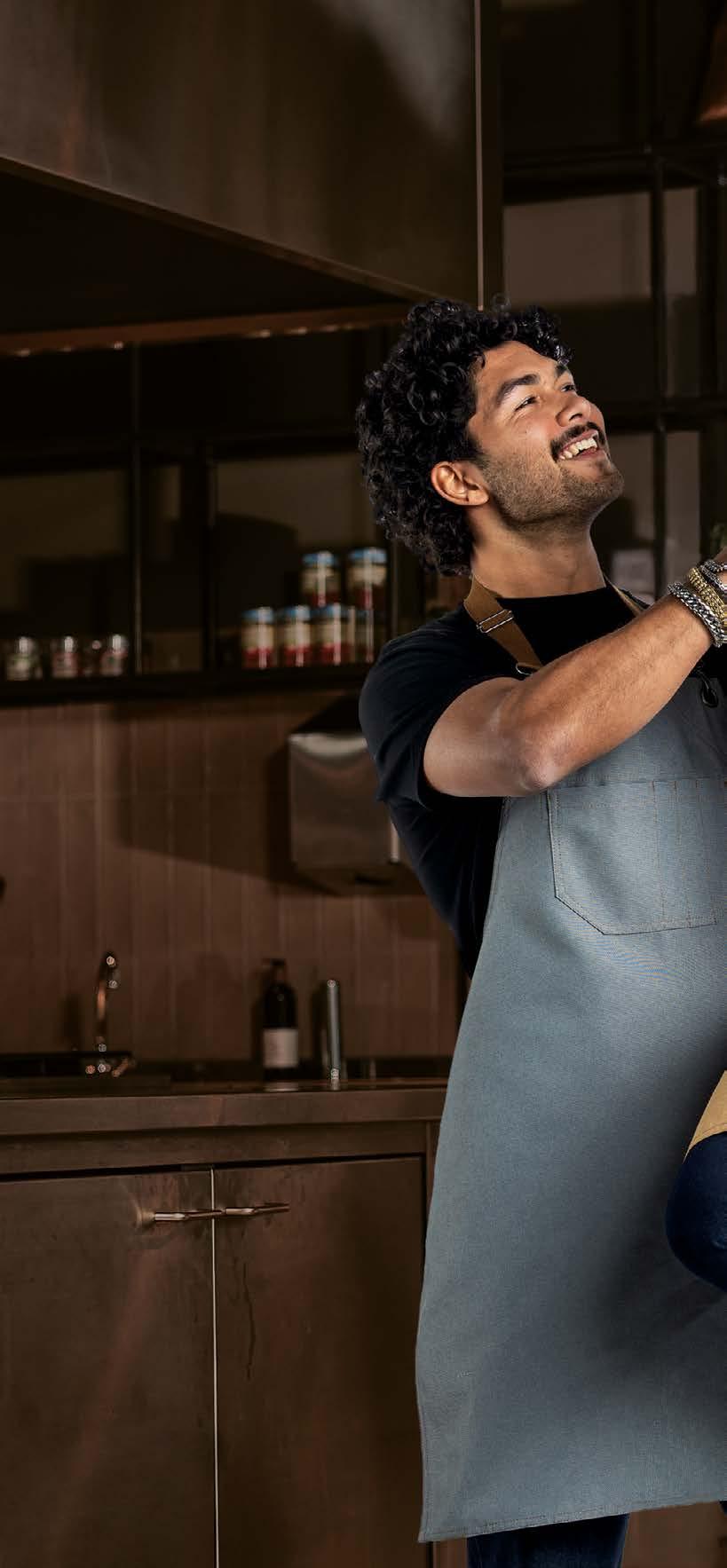 Colores profundos, diseños sencillos y accesibilidad para todos definen la colección Basix. La colección incluye chaquetas de chef, pantalones y delantales para personal de cocina y de servicio, combinando funcionalidad con una estética limpia y atemporal.