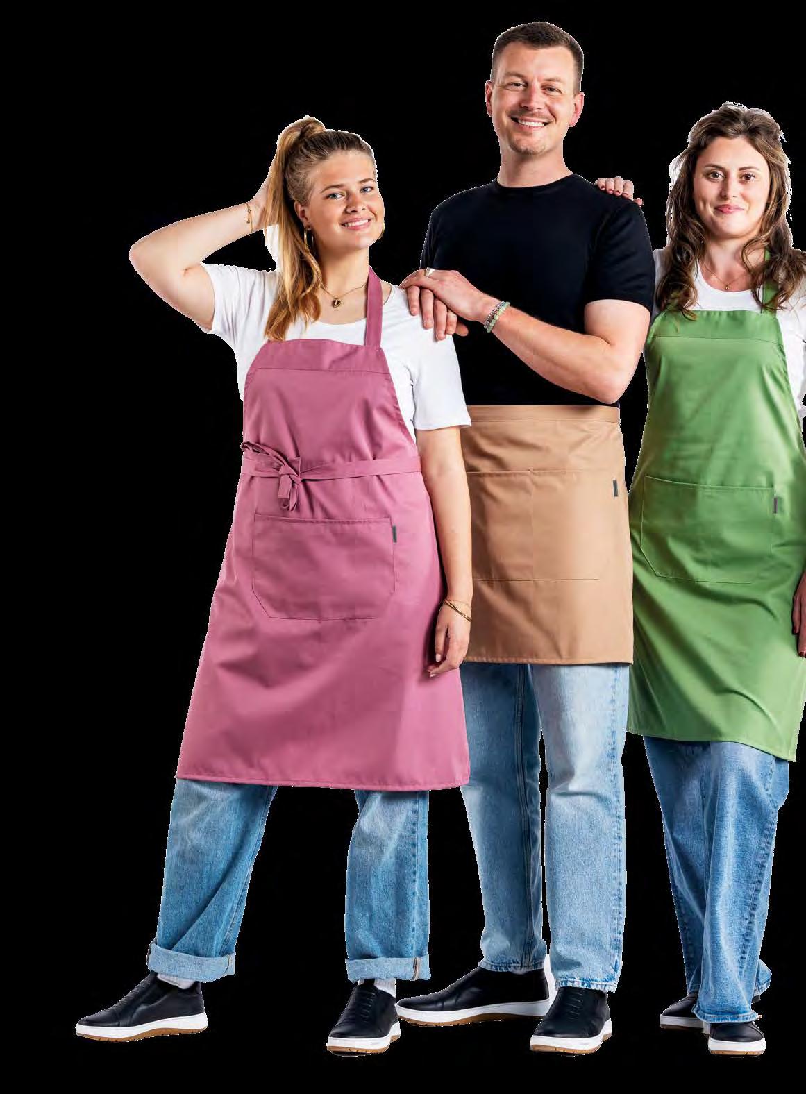 Todos los artículos se producen en Europa y están diseñados para soportar un uso diario intensivo, incluidos delantales con peto impermeables para entornos exigentes de cocina y servicio. Además, todos los delantales con peto y delantales están disponibles en varias tallas, lo que garantiza un ajuste cómodo y práctico para todos.