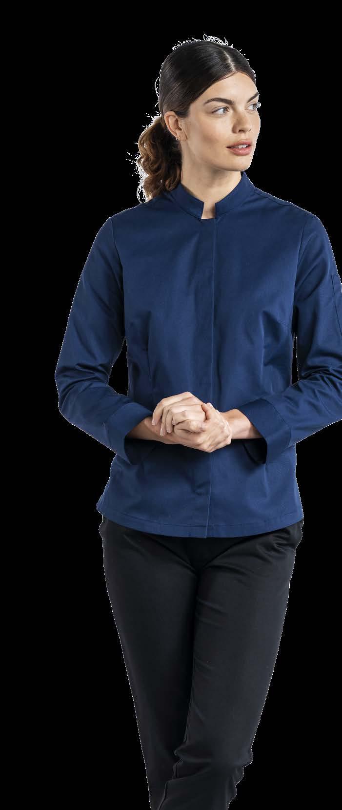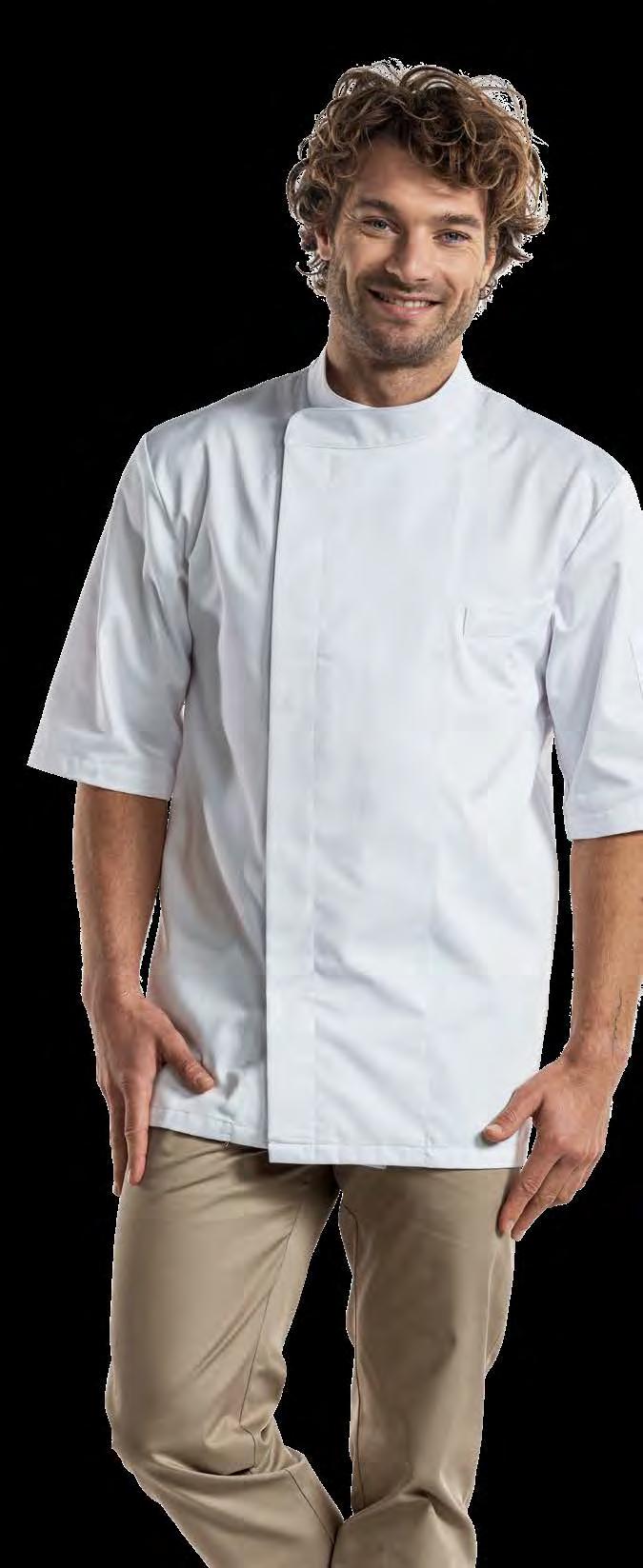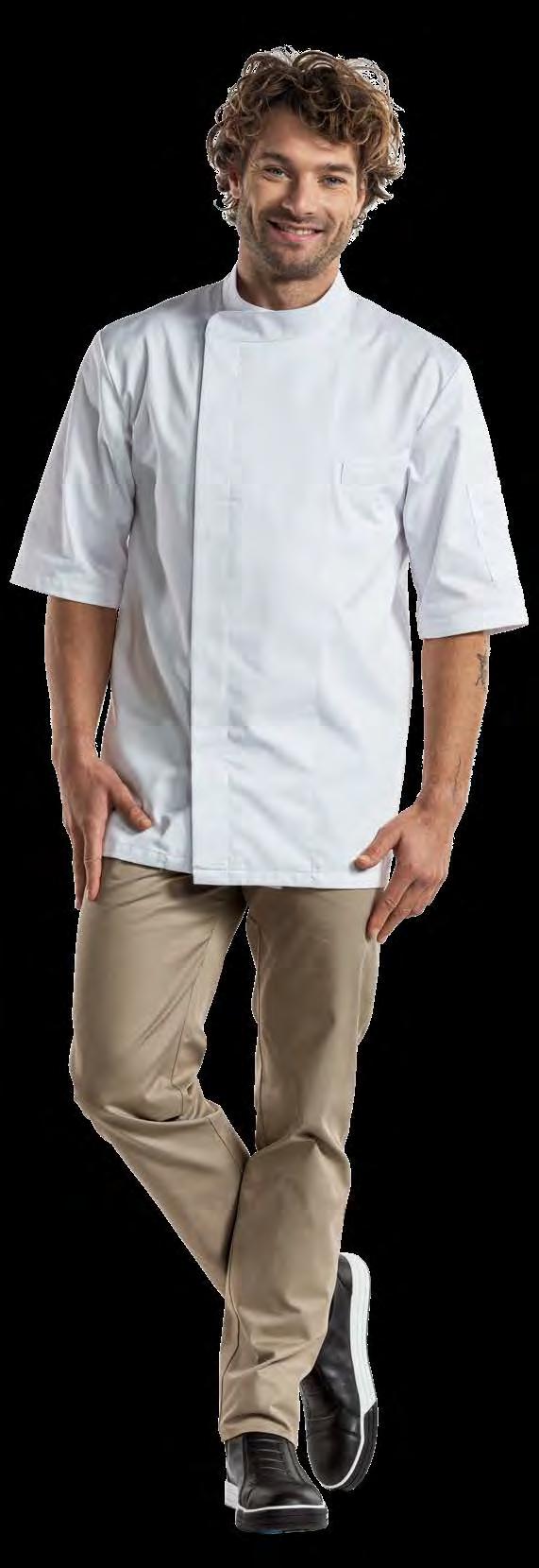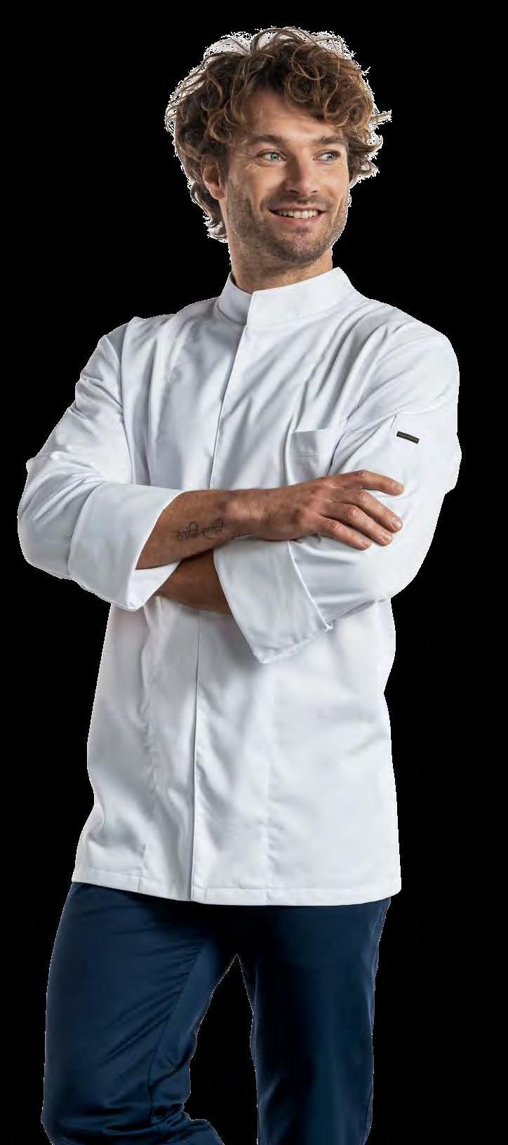 Nuestra colección 2026 refleja exactamente quiénes somos: ropa premium para cocina y servicio que sigue siendo accesible. Reforzamos nuestra colección básica con nuevos artículos y elevamos nuestras líneas premium para quienes buscan un extra de estilo y confort. Un cambio destacado tras 30 años es la sutil sustitución de nuestro logotipo clásico por un detalle refinado con nuestro nombre, aportando una imagen aún más elegante.