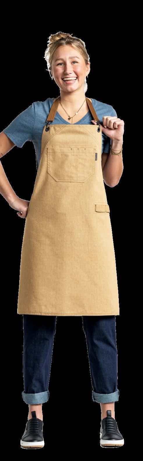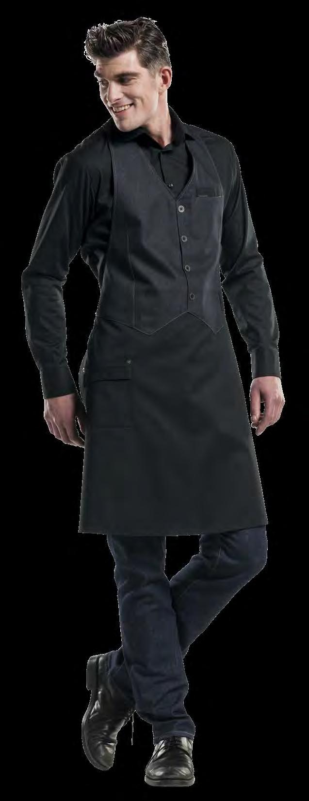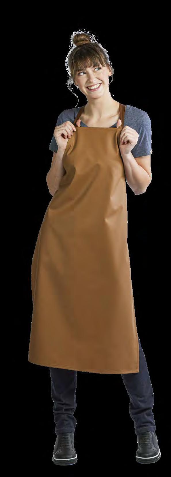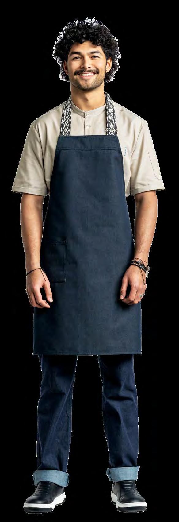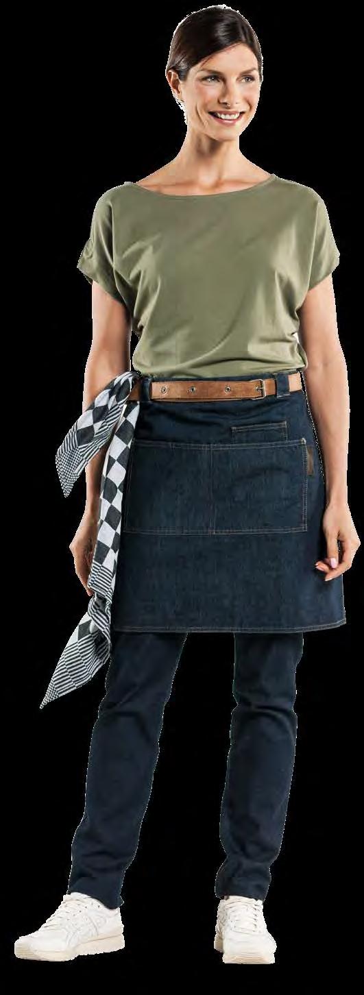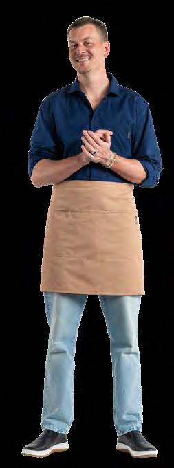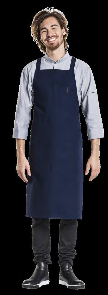 Authentiek, lichtgewicht en tijdloos. Van bistro, foodtruck tot trendy bar, de Leather 70-collectie voelt zich overal thuis. De innovatieve combinatie van rundleer en polyester maakt de leren schorten en sloven licht en minder kwetsbaar voor vlekken. Alle banden zijn op maat te verstellen. De ‘raw edge - single stitch’ afwerking geeft de collectie de herkenbare, stoere uitstraling.