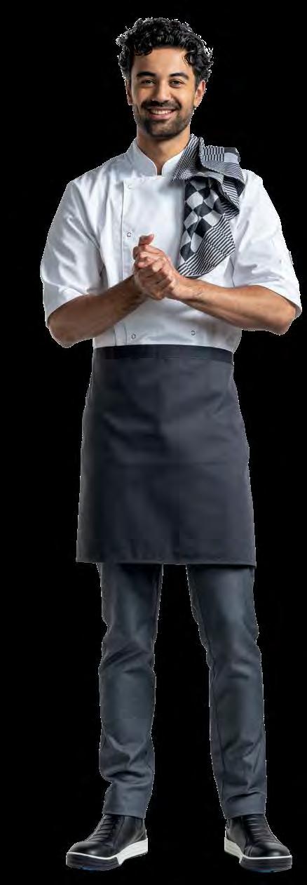 Diepe kleuren, eenvoudige ontwerpen en toegankelijkheid voor iedereen kenmerken de Basix Collection. De collectie bestaat uit koksbuizen, broeken en schorten voor zowel keuken- als bedienend personeel, waarbij functionaliteit wordt gecombineerd met een strakke en tijdloze uitstraling.