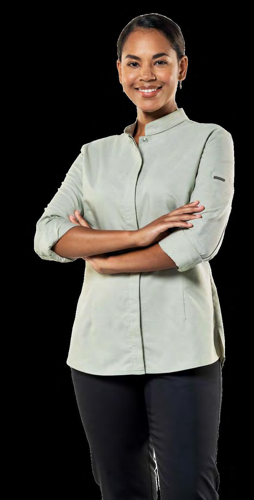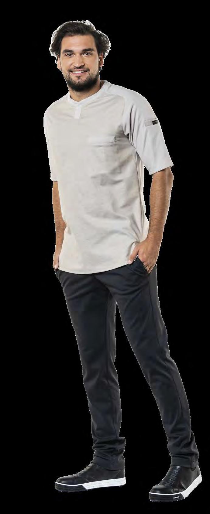 Vrijheid staat voorop bij de FX-collectie. Er is gekozen voor lichtgewicht stoffen, met of zonder structuur. De fijne jersey-stof zorgt voor onbeperkte flexibiliteit. Deze jersey-stof bestaat uit Tencel® en polyester van gerecyclede plastic flessen. De combinatie van deze materialen is niet alleen milieuvriendelijk, maar zorgt er ook voor dat de stof snel droogt. Korte, halflange of oprolbare mouwen: kies het model dat het beste bij jou past. Zo houd je het iedere dag in de keuken met gemak vol!
