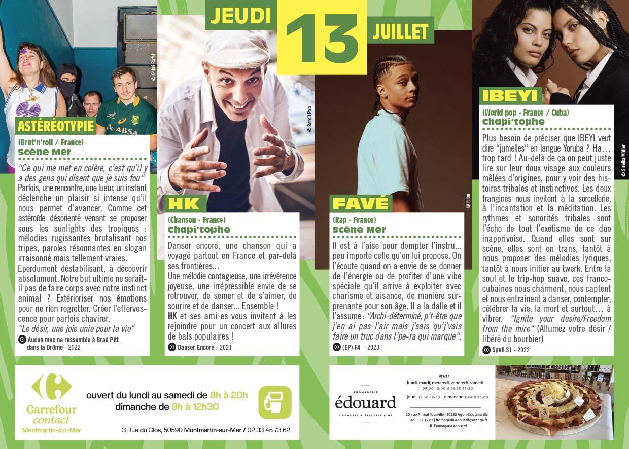 Découvrez toutes les infos concernant la programmation, les art'nimations en journée, nos actions éco-responsables, ...