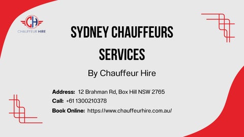Experience the pinnacle of elegance with Luxury Chauffeur Service Sydney. Chauffeur Hire offers professional, discreet drivers and premium vehicles, ensuring a seamless and stylish journey. Whether for corporate events or special occasions, indulge in unparalleled comfort and convenience, making every trip memorable. Elevate your travel experience with their exceptional service. To know more, visit website - https://www.chauffeurhire.com.au/