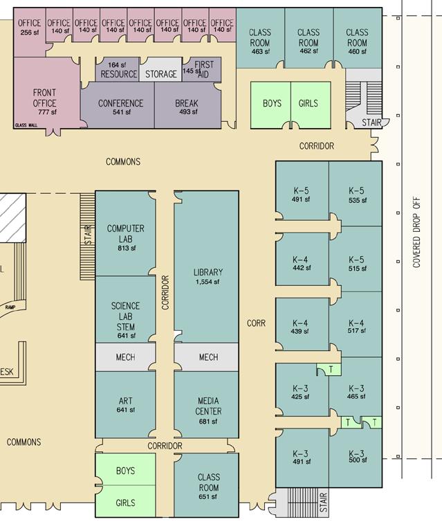 • Covered Drive-Thru and Commons Entrance – An “airport-style” canopy will provide a safe, weather-protected drop-off and pick-up zone, reducing congestion and increasing safety.