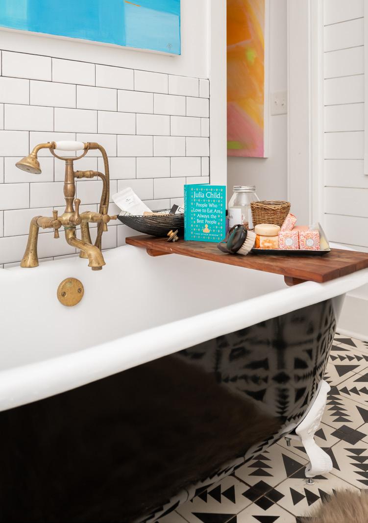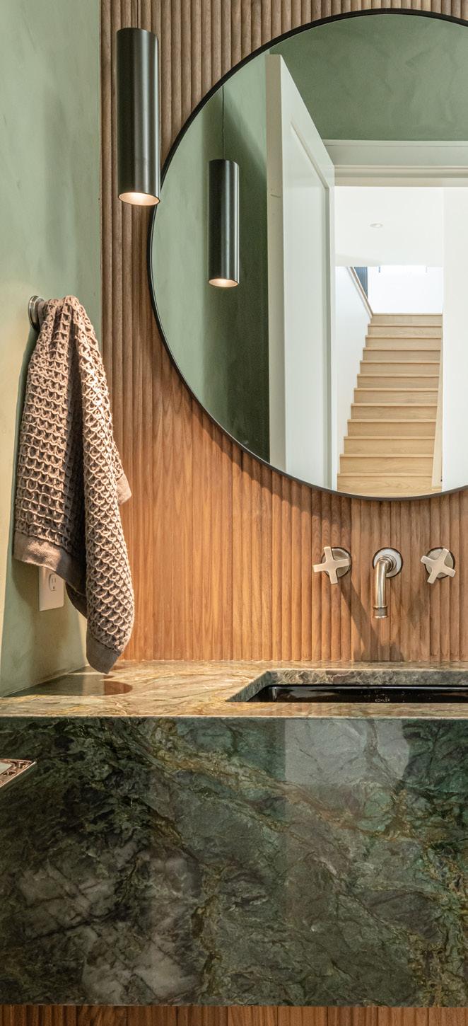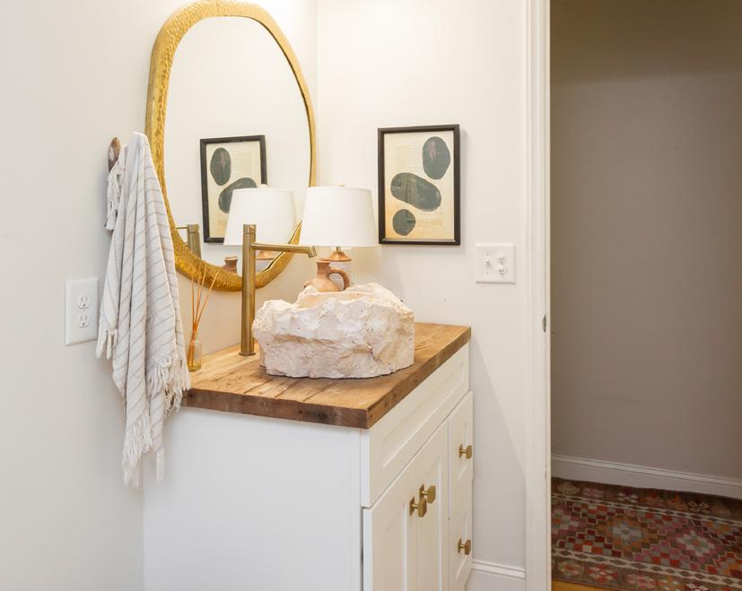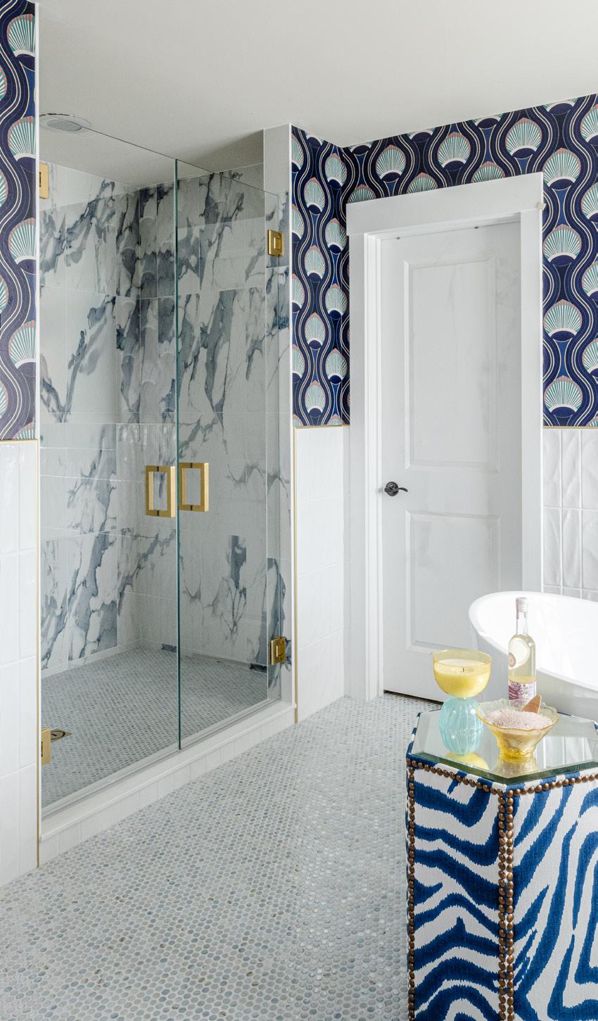 Bold color, boho-chic layers, and intentional patterning set a playful tone, giving the full bathroom permission to have fun while serving its function. The result is a selfcontained space that feels fresh, expressive, and effortlessly cool. This kind of spot is designed to be lived in and enjoyed.