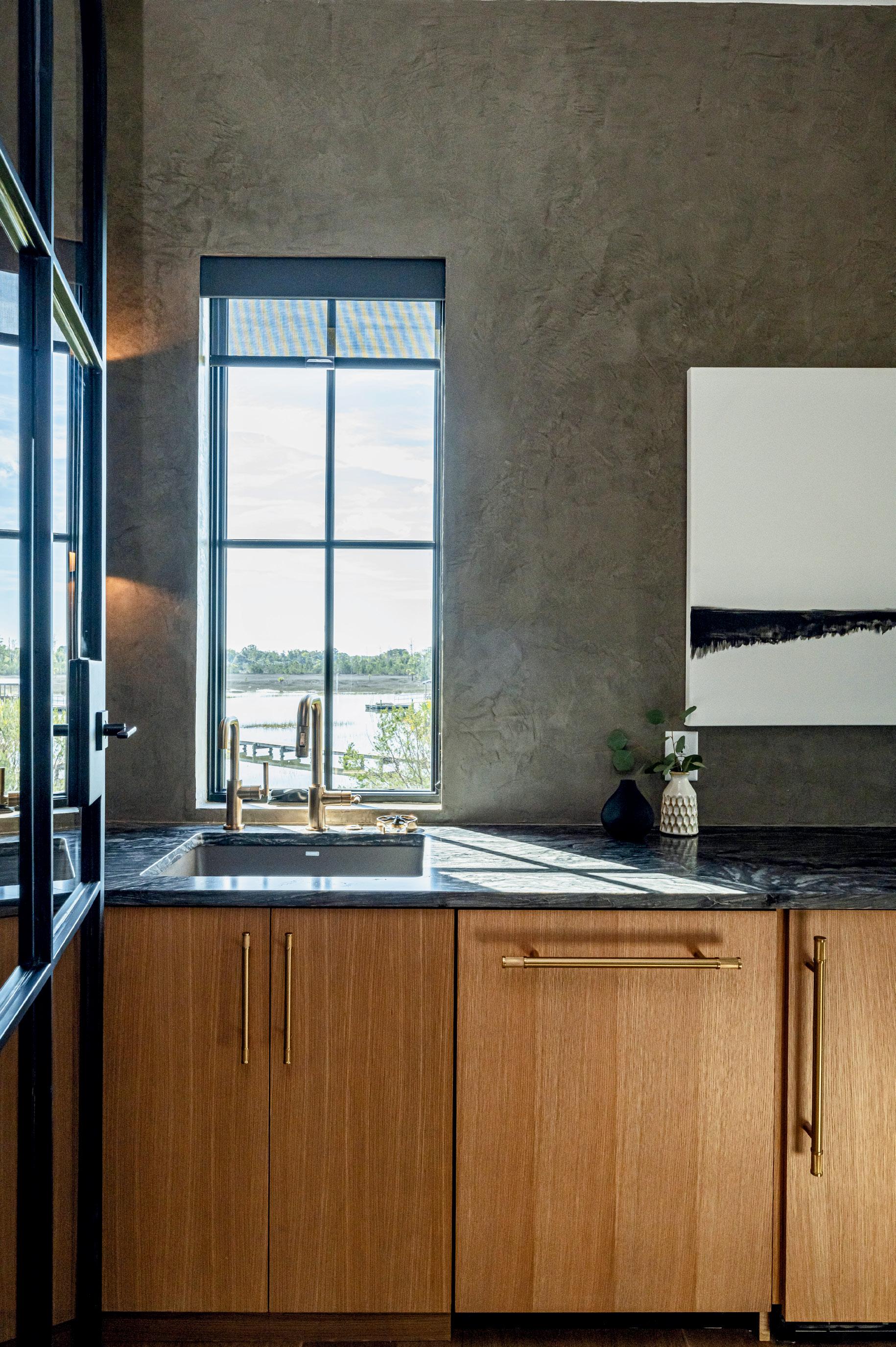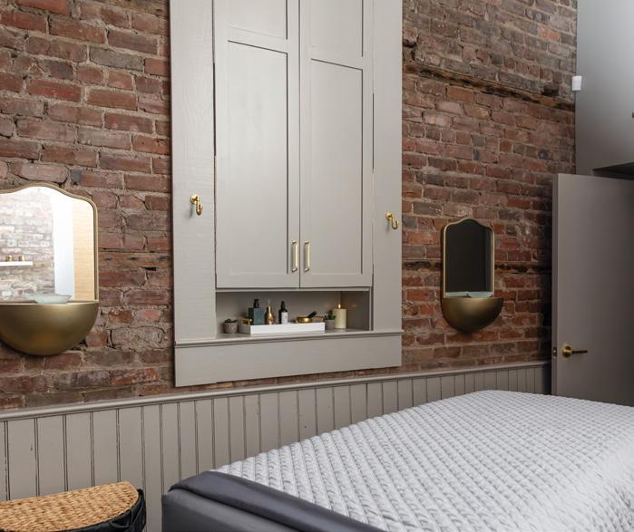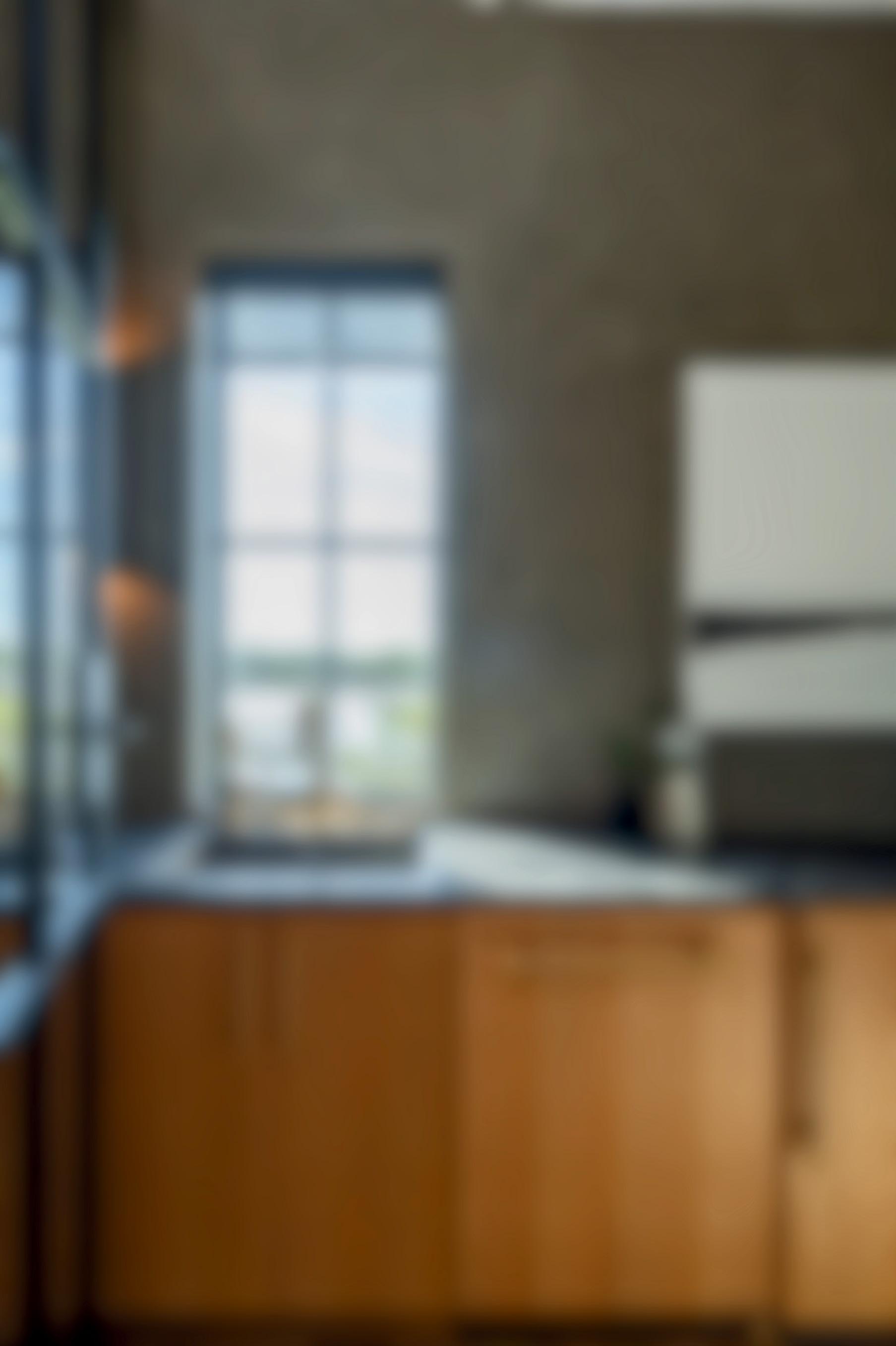 That balance between function and feeling carries through the entire space. Custom cabinetry maximizes storage without disrupting flow, while polished concrete floors installed by Summit Industrial Flooring offer durability and visual continuity within the historic structure. Soft curtains help temper the effect of high ceilings and hard surfaces, creating a sense of enclosure that feels calming rather than confining.