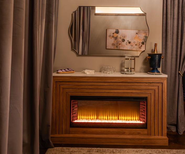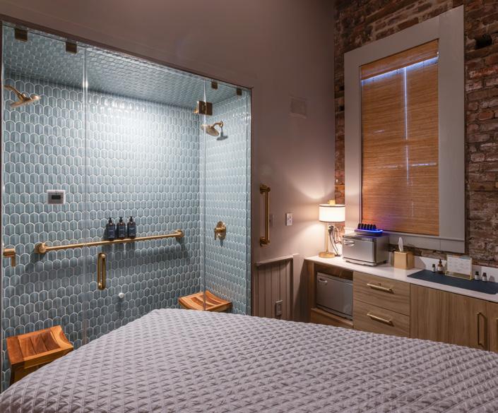 Equally considered is the guest experience beyond the treatment room. Signature Woodhouse touches remain: heated neck wraps, cozy blankets, and a hot-tea-andchampagne ritual that encourages guests to linger in the