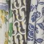 A playful yet modern sensibility defines this bathroom where custom window treatments and a tailored shower curtain create a harmonious design. Cement tile introduces pattern and grounds the space in texture and movement. Built by Salt Marsh Contracting.