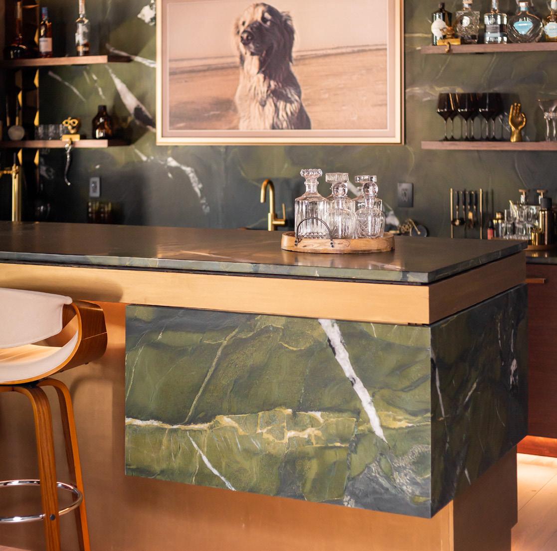 the overall vision balanced and refined. “Her contribution was immeasurable throughout the process,” Andrea adds. The interior design of the spaces was modern with retro and global glamour, incorporating her and Mateo’s love of travel and bold, graphic design. “With this new house, we wanted to incorporate pieces from all over the globe,” states Andrea.
