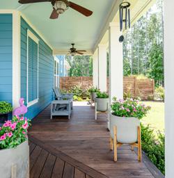 Select climate-resistant materials, such as composite siding and decking, along with impact-rated windows and doors.