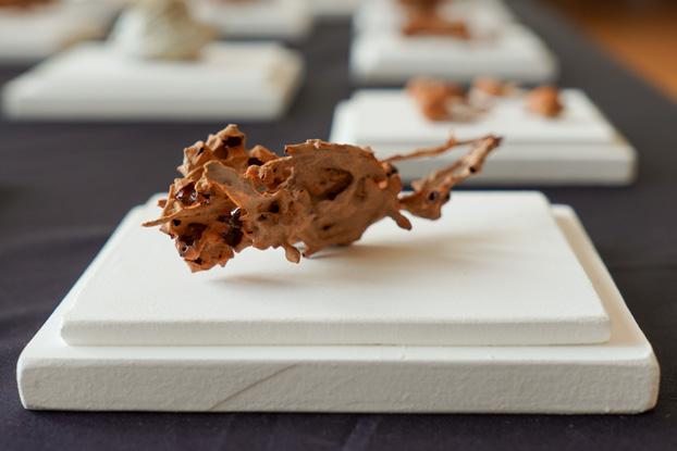 María Laura Galeotti suele caminar por las playas de Mar del Plata – Argentina – recogiendo ramas, piedras y pequeños objetos que inspiran piezas de cerámica en su taller. Mirjam Elburn recorre los bosques en Dargun – Alemania – sin buscar algo en particular, pero encontrando algunas piezas que llaman su atención.