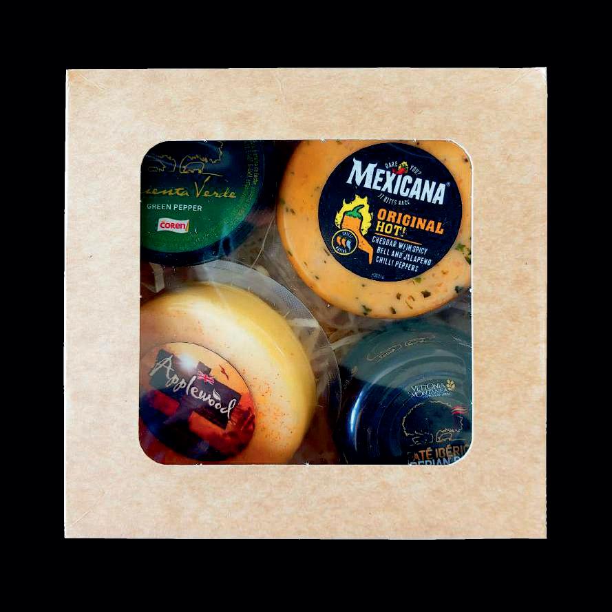Šį rinkinį sudaro nepakartojamo skonio puskiečiai Angliški sūriai. – ypatingo MEXICANA skonio, aštrus, puskietis šiek tiek trapus, čederio tipo sūris. Kad įgautų nuostabų Meksikos kraštų autentišką skonį jis buvo sumaišytas su įvairiomis paprikų rūšimis, dėl to šis sūris savo aštrumu neretai primena meksikietiškus patiekalus. APPLEWOOD - Angliškas dūmų skonio čederio sūris, pusiau kietas, 54% riebumo čederio sūris. Tikras anglų lobis. Jis nėra rūkytas, tačiau turi dirbtinį dūmų kvapą, besigaunantį naudojant paprikos miltelius jo gintarinės išvaizdos ir pikantiško skonio suteikimui. COREN IBERICO PAŠTETAI – klasikinio ir su žaliaisiais pipirais skonių rūšys. Kalbant apie Iberico kiaulieną reikia pažymėti, kad tai aukščiausios kokybės kiaulienos mėsa, kurią galima rasti tik Ispanijoje. Tai juodosios Iberijos kiaulės, auginamos ypatingu būdu. Būdamos lais ėje kiaulės mint ažuolų gilėmis, žolelėmis ir laukiniais aisiais, kurie įtakoja