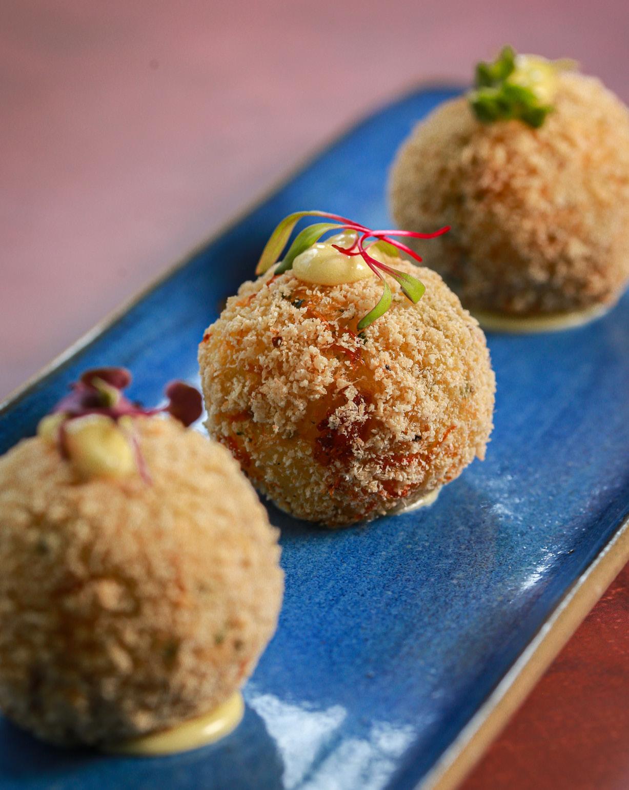 Em uma louça à sua escolha, disponha os bolinhos de feijão, arroz, dadinho de tapioca e os chips de banana e ao lado coloque uma generosa quantidade de maionese verde. Sirva imediatamente.