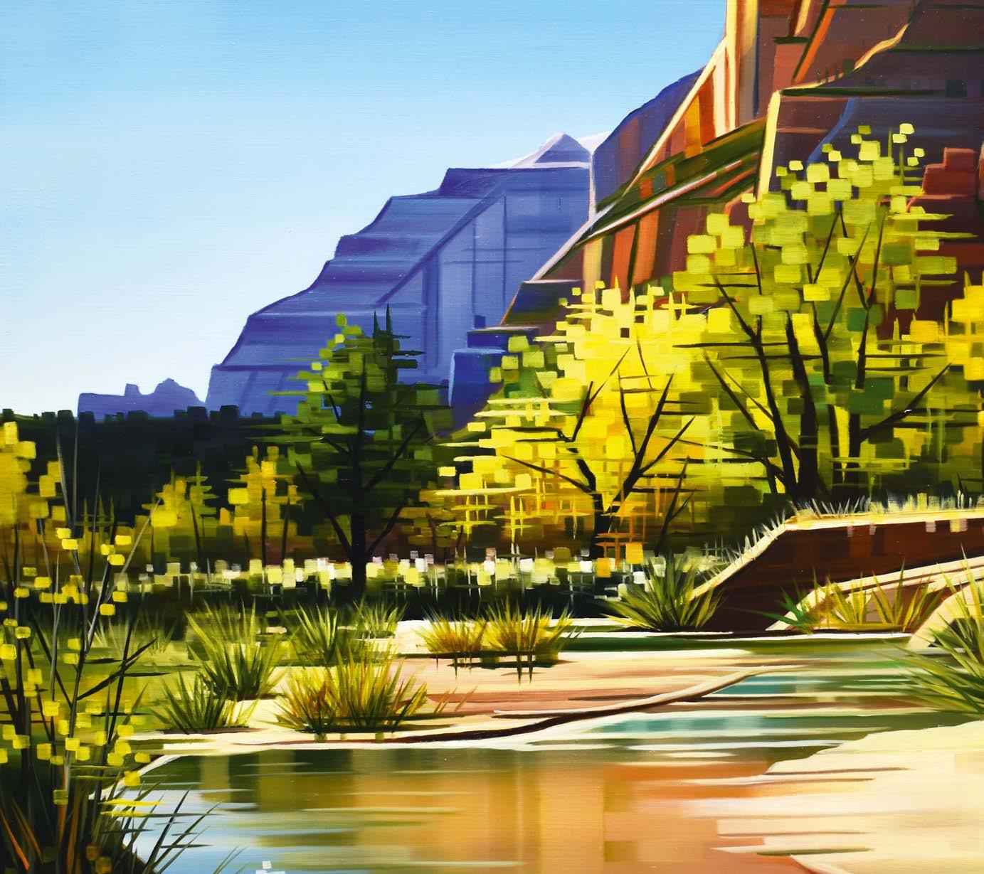 …we’re lucky that painting them – and using di erent mediums and tools to do so – can result in wildly di erent outcomes. Take just three stories in this issue of Artists & Illustrators. Cover artist Michelle Condrat paints bright images of the desert, Southwest of the United States. Her stunning work has been called linear, Cubist, pixelated, and even digital but are, in fact, entirely executed in oil. Then we have Simon Palmer, this month’s Big Interview artist. His watercolour paintings of North Yorkshire (his self-proclaimed spiritual home) use a limited colour palette and are often emphasised or exaggerated, creating his very unique and individual style. Then there’s San Francisco based palette knife painter Lisa Elley, whose impasto technique sees her apply her paint lusciously to the canvas, creating a Californian seascape that’s entirely distinctive in its approach.