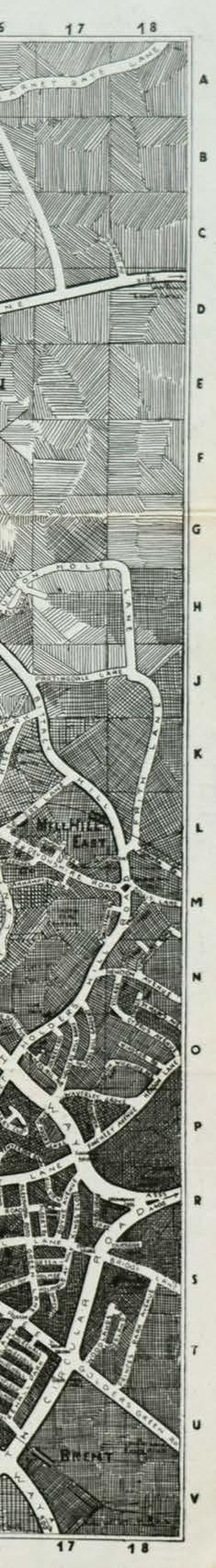 Edgware, Hendon and Mill Hill, carbon ink on pocket map, 40x44cm