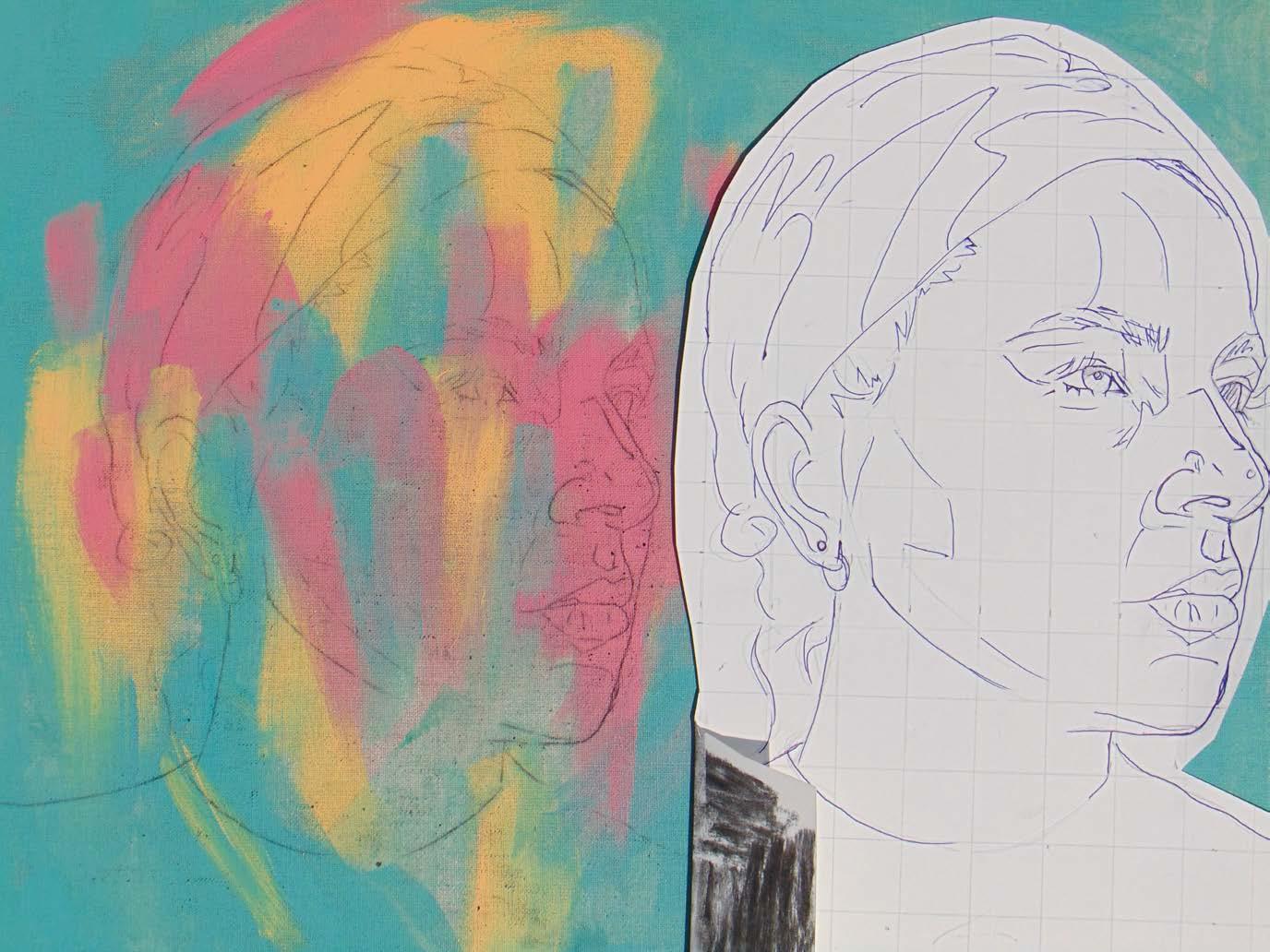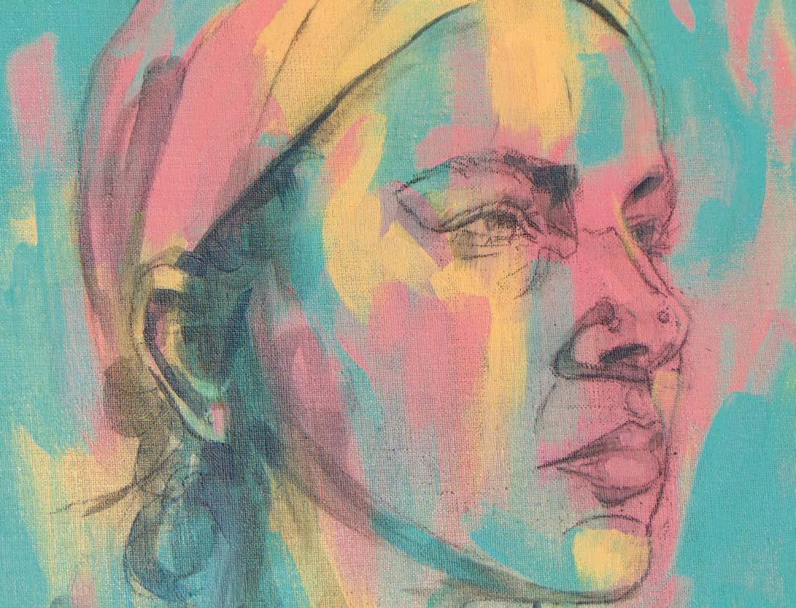 Currently working from her studio at home in Bristol, Flo would primarily class herself as a portrait artist. She has a deep fascination with people and the stories they hold, and aims to convey this through expressive and often colourful mark-making in mixed media.