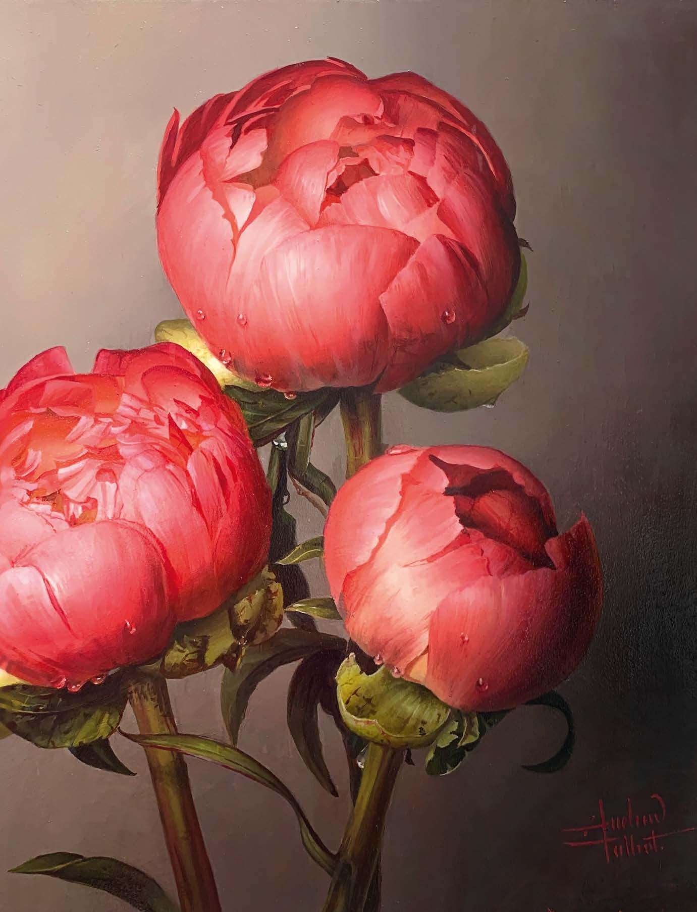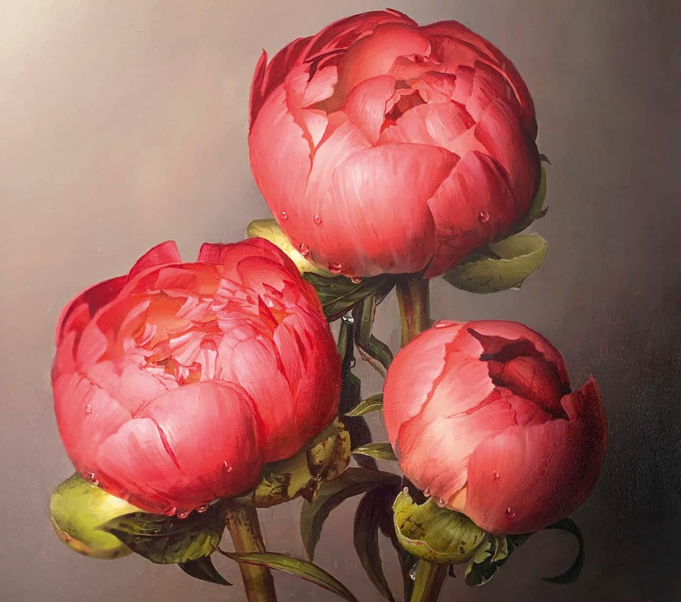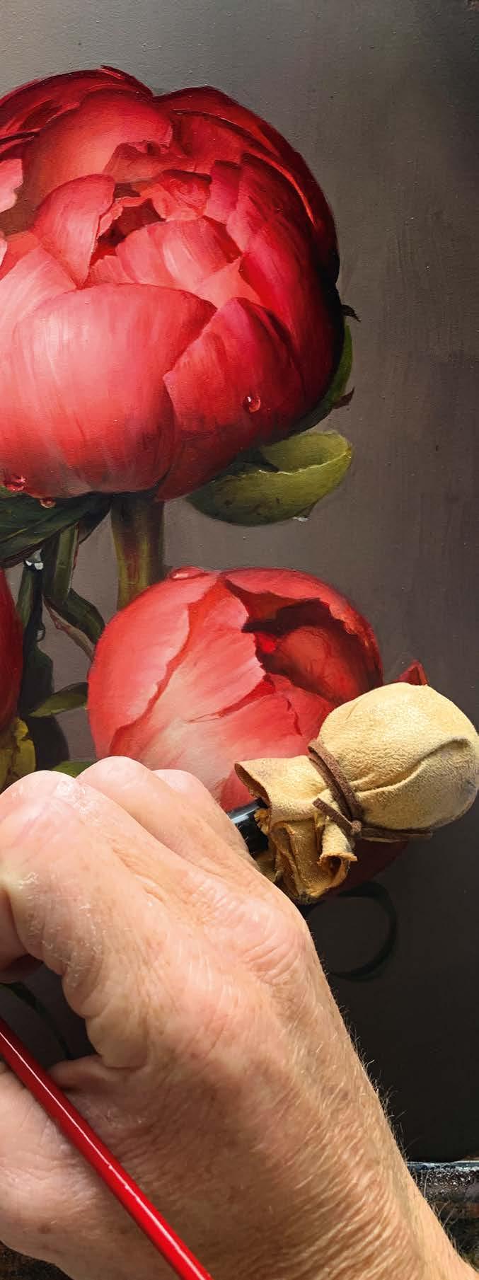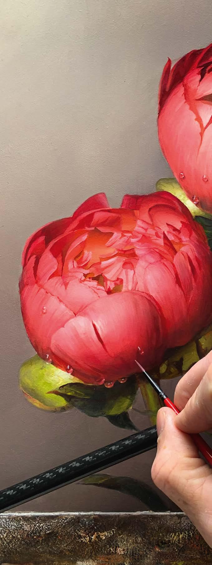 Zahrah Azhar shows you how she painted Pakistani honey mangoes, whilst Andrew Talbot demonstrates how he uses his self-invented, lightweight Mahl stick to paint some beautiful peonies.