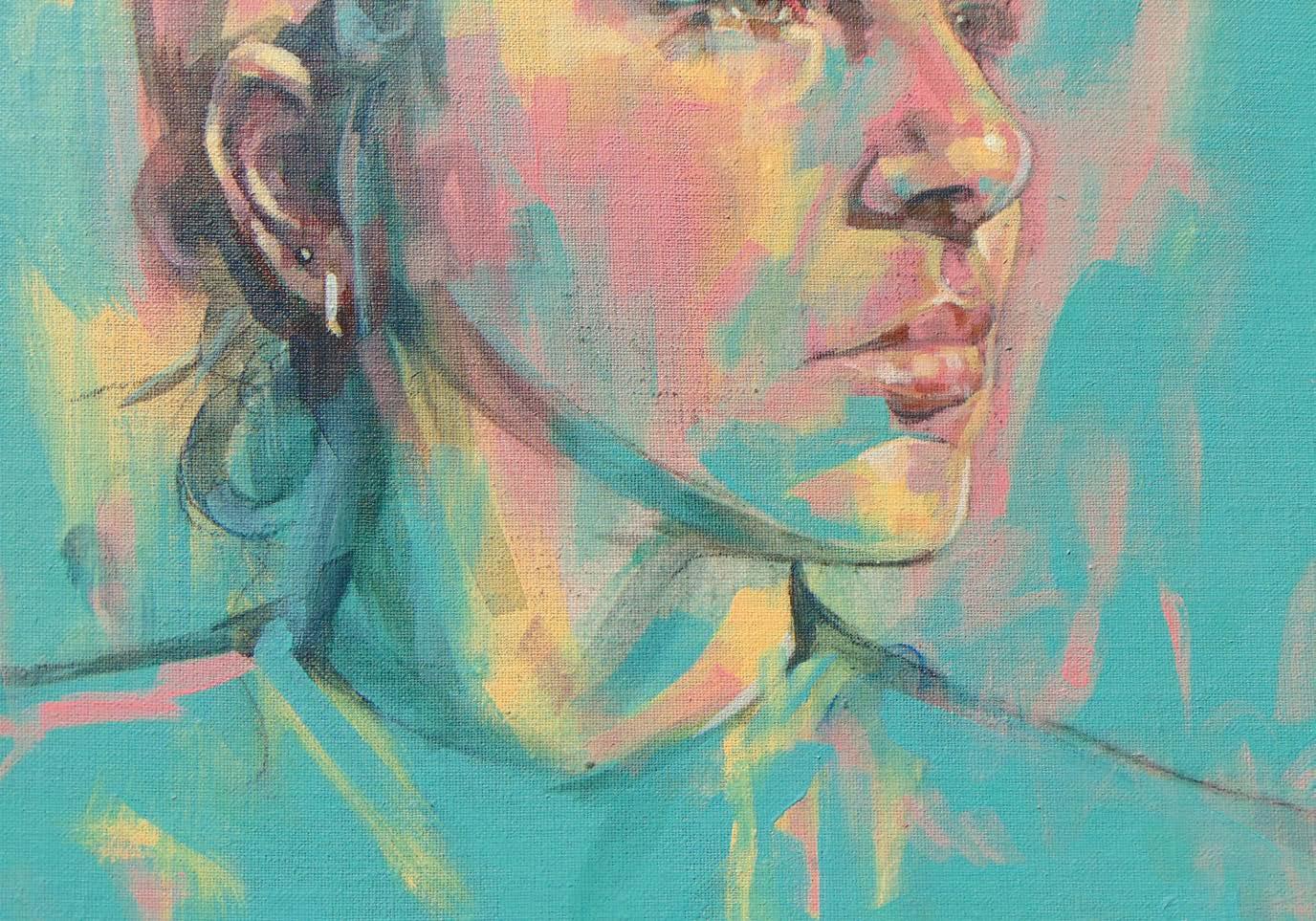 Sarah Jane’s love of colour is apparent in her large scale, energetic portraits. They often represent people she admires who are making change across various industries. As a queer artist, she brings a unique approach to portraiture in a bold style.