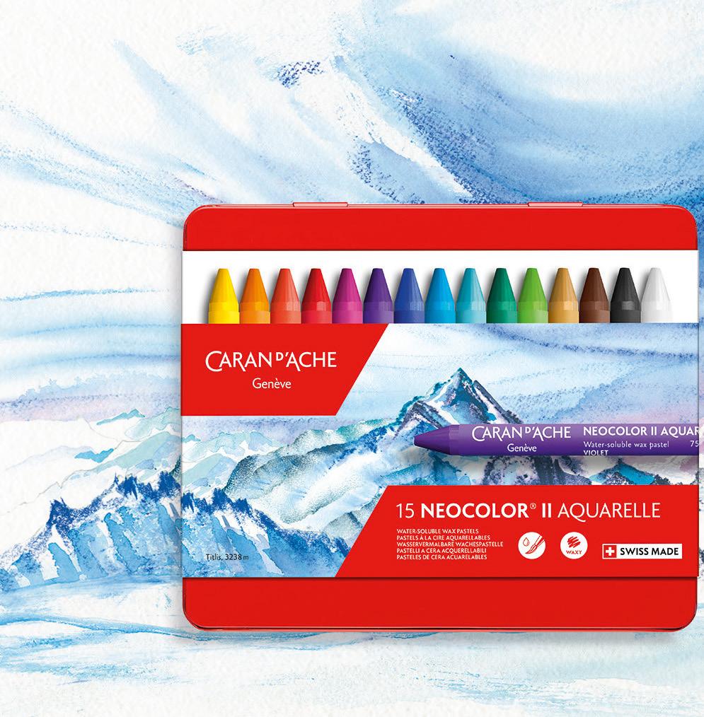The NEOCOLOR® II water-soluble wax pastels will accompany you on all your arts and crafts journeys, thanks to a unique formula that is rich in pigments both for wet and dry applications. Discover the smoothness and vibrancy of the 84 shades and enjoy countless drawings on different materials, including paper, cardboard, wood and terracotta. Made in Geneva, they are available in assortments of 10, 15, 30, 40, 84 and are also sold individually.