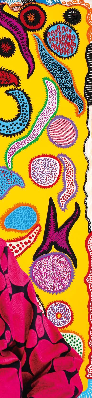 The polka dot is, of course, the most important of Kusama’s motifs: she is synonymous with it –multitudes of spheres scatter across her eightdecade career. She returns to it always – repeating ▸
