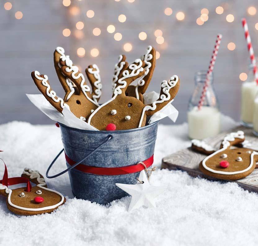 • Use small blobs of the icing to attach silver balls for the eyes and red candy sweets for the ‘Rudolph’ noses.