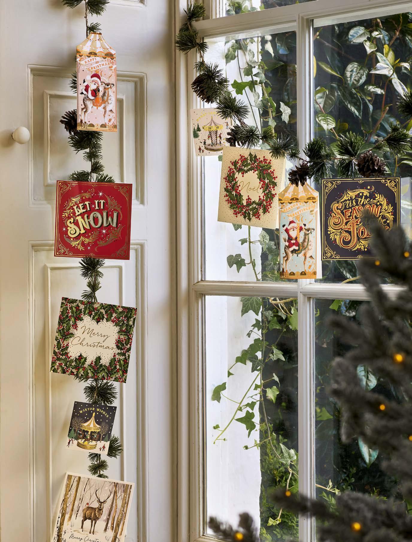 In this modern age, sitting down to handwrite a letter to friends and family rarely happens. The yuletide season evokes a touch of nostalgia, though, and an opportunity to send glad tidings to those we care about. Take the time to spend an evening writing a thoughtful message and make sending the card worthwhile, perhaps adding a letter reflecting on the past year to those acquaintances not seen for a while. Displaying a large number of cards received can often be tricky – a string around a room or up a staircase can be helpful for pegging cards onto. After Christmas, look for local charities that collect cards for recycling. Selection of Christmas cards, John Lewis & Partners.