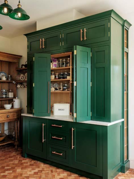 With a lifetime guarantee, the timeless styles offered by The White Kitchen Company will bring joy for years to comeThe back wall incorporates a fitted larder cupboard, a built-in bar, and a secret pantry. This impressive scullery is in the Shaker-style cabinets, hand-painted in Little Greene’s Dark Brunswick Green. The classic Period English cabinets sit perfectly within this Regency limestone villa in Bath.