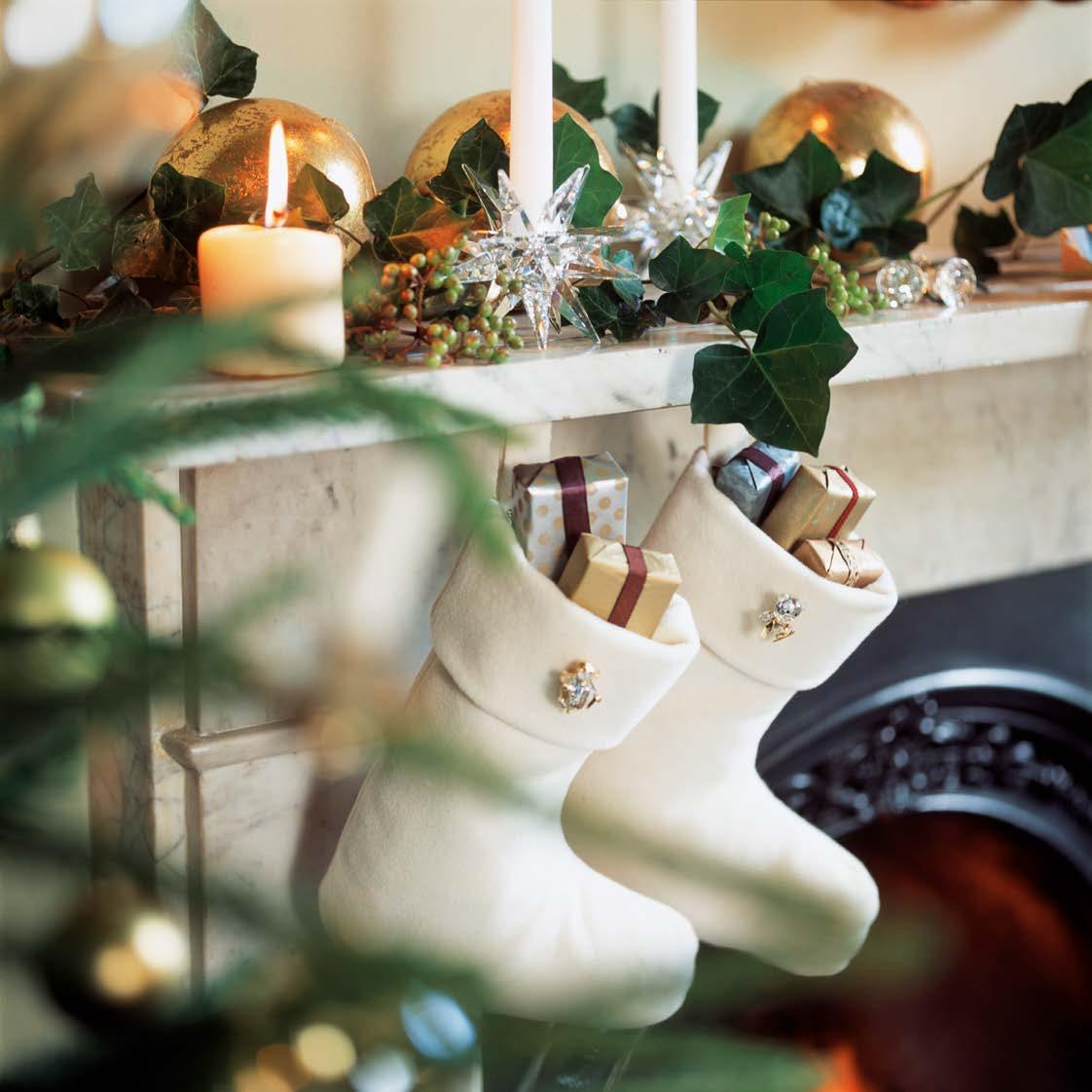 • A string of small felt stockings or hessian sacks can be hung across a fireplace (though chocolate treats are not advised if the fire is in use).